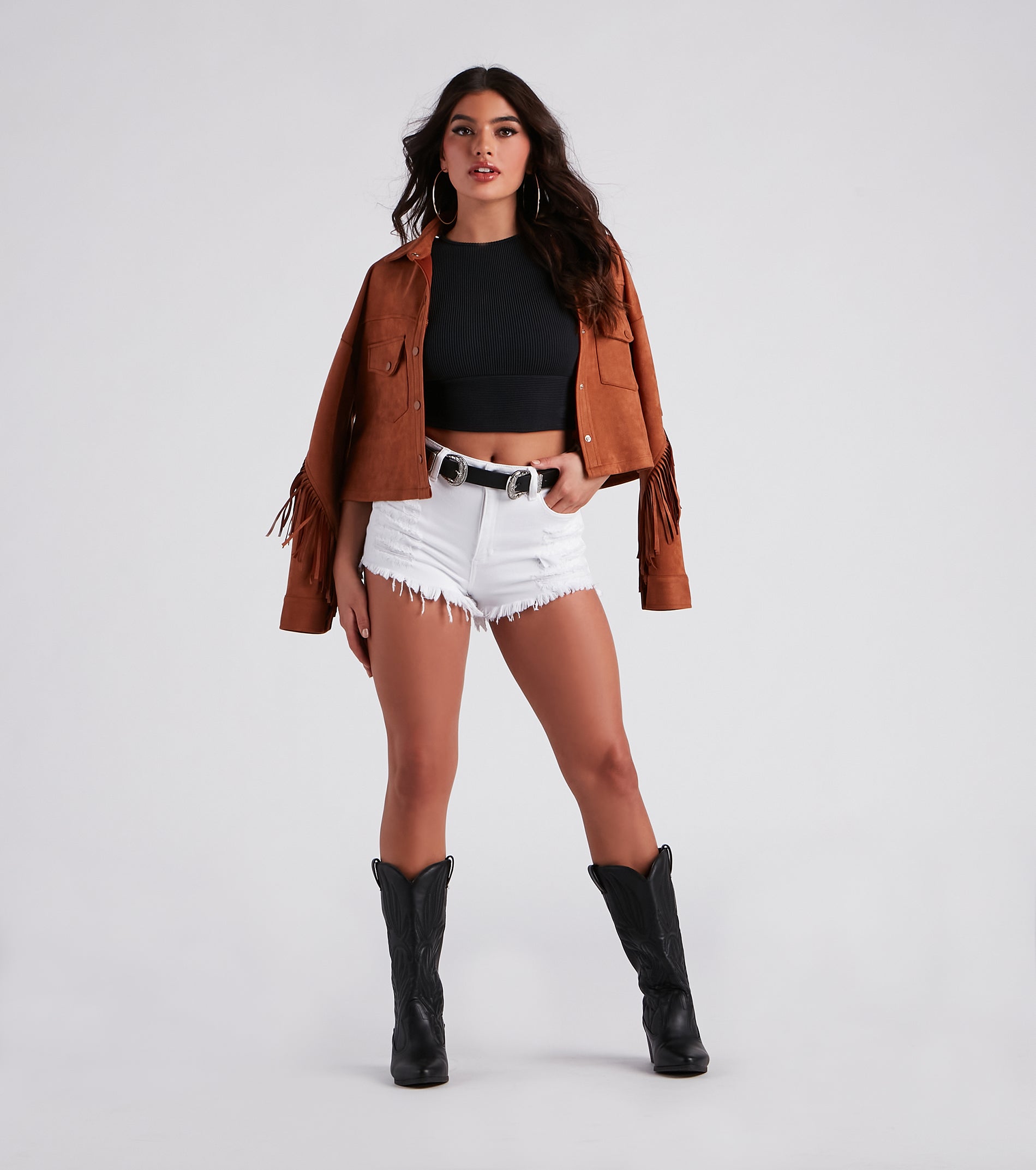 This festival season. show off chic western vibes when you accessorize your ‘fits with this trendy belt! It features an adjustable double buckle design with etched detailing. Style with .