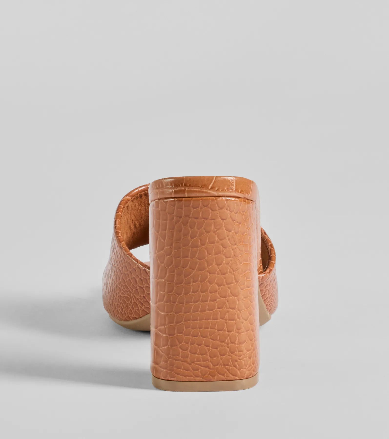 You’re bound to be the chicest babe in these faux leather heels! They feature a square toe. a wide strap. and a croc-embossed pattern for a stylish texture. Complete the look in a cute .