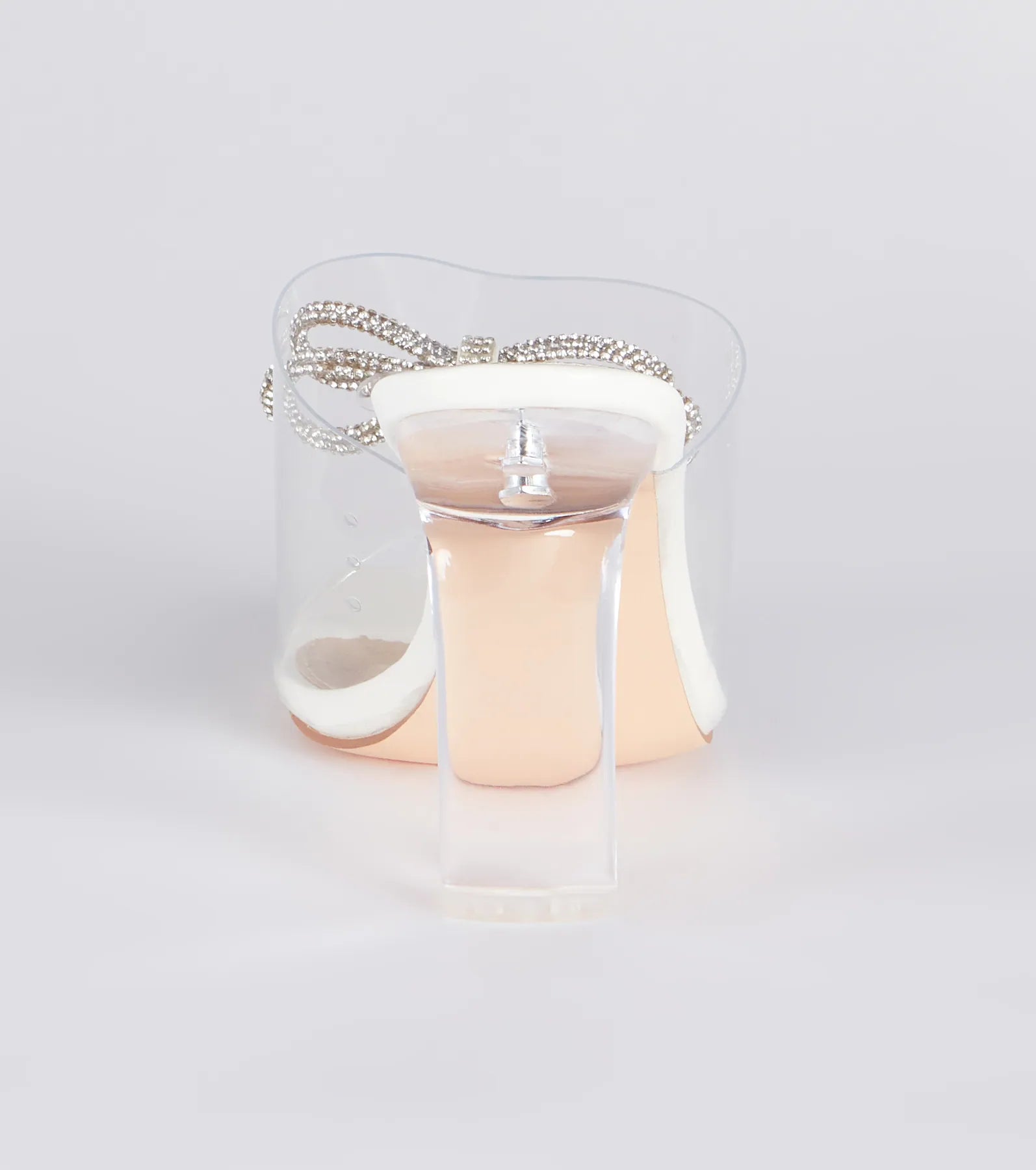 Clearly The Vibe Rhinestone Bow Lucite Mules