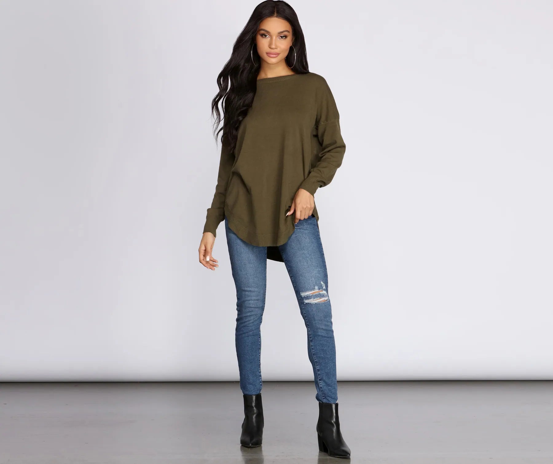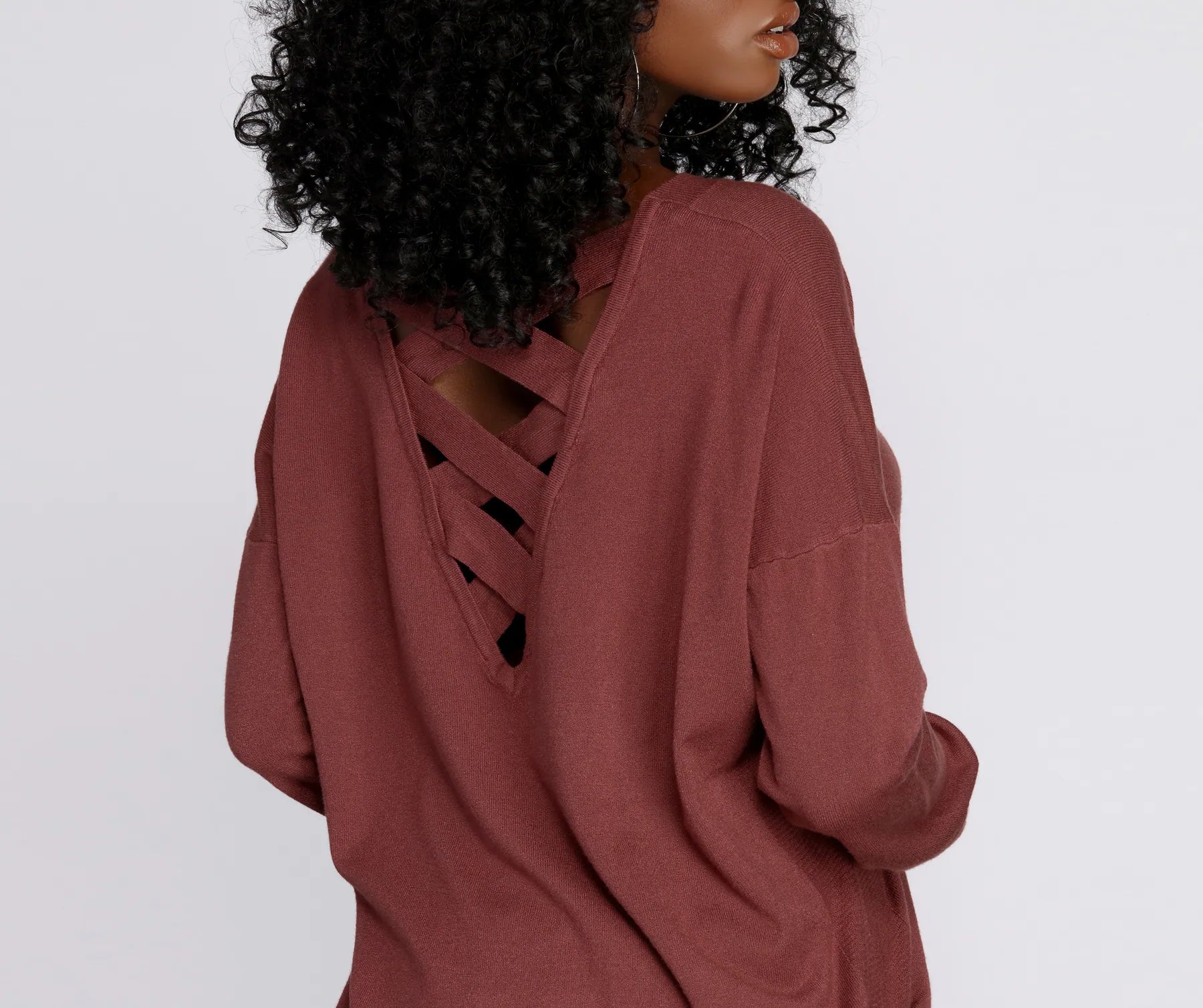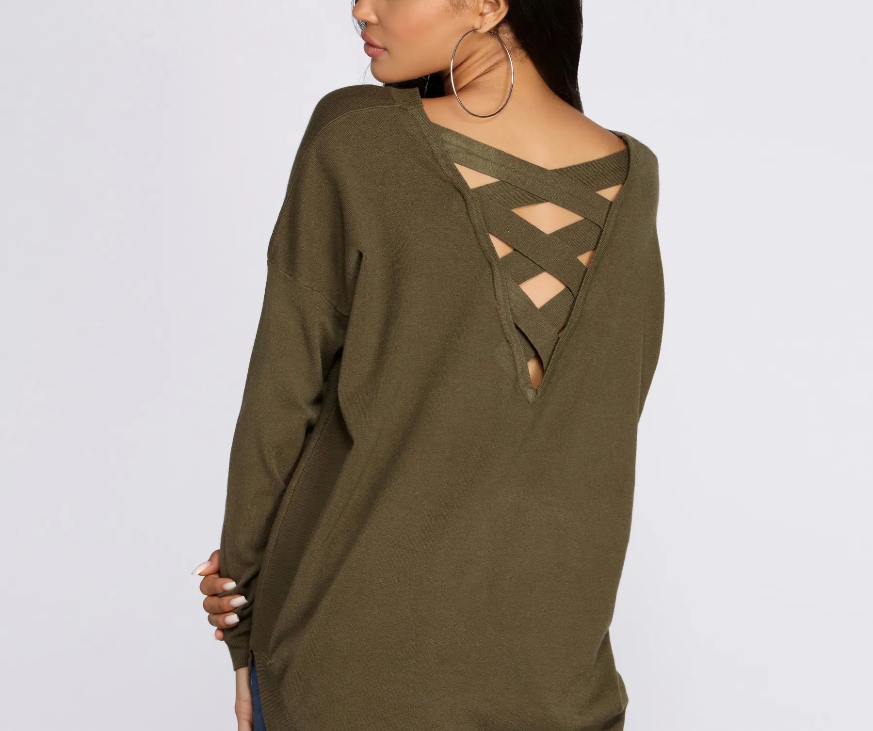 Fall back on this cute basic to layer with your fall staples this season! It features a ribbed crew neck. long sleeves. lattice straps to accent the back and a rounded hem. Tunic is composed of a soft to the touch sweater knit fabric that offers a relaxed fit with plenty of stretch.