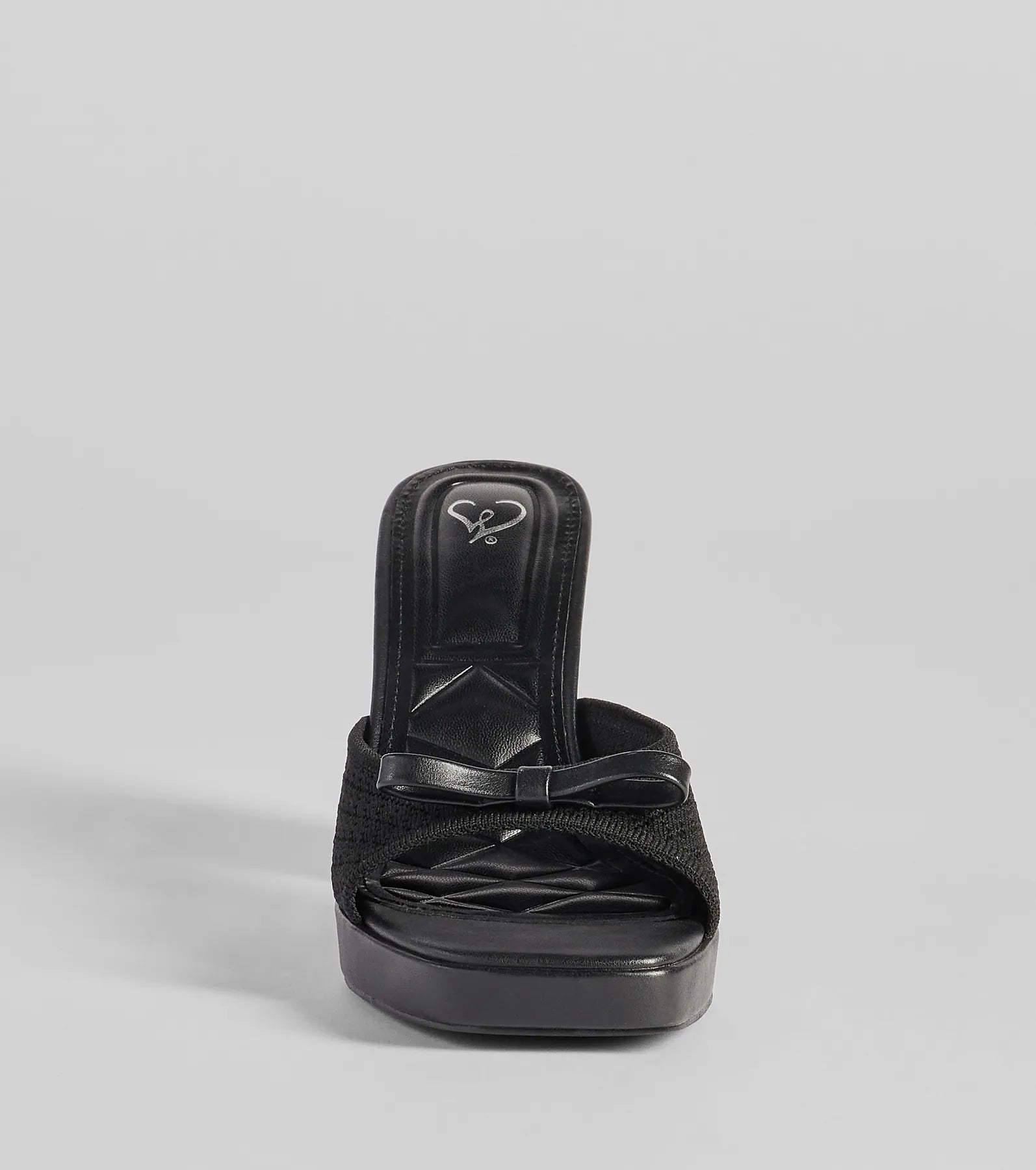 Step into these cute platform mules to elevate your look this weekend! The heels are designed with a knit strap. an adorable bow inset. and a comfortable block heel. Pair with a handbag.