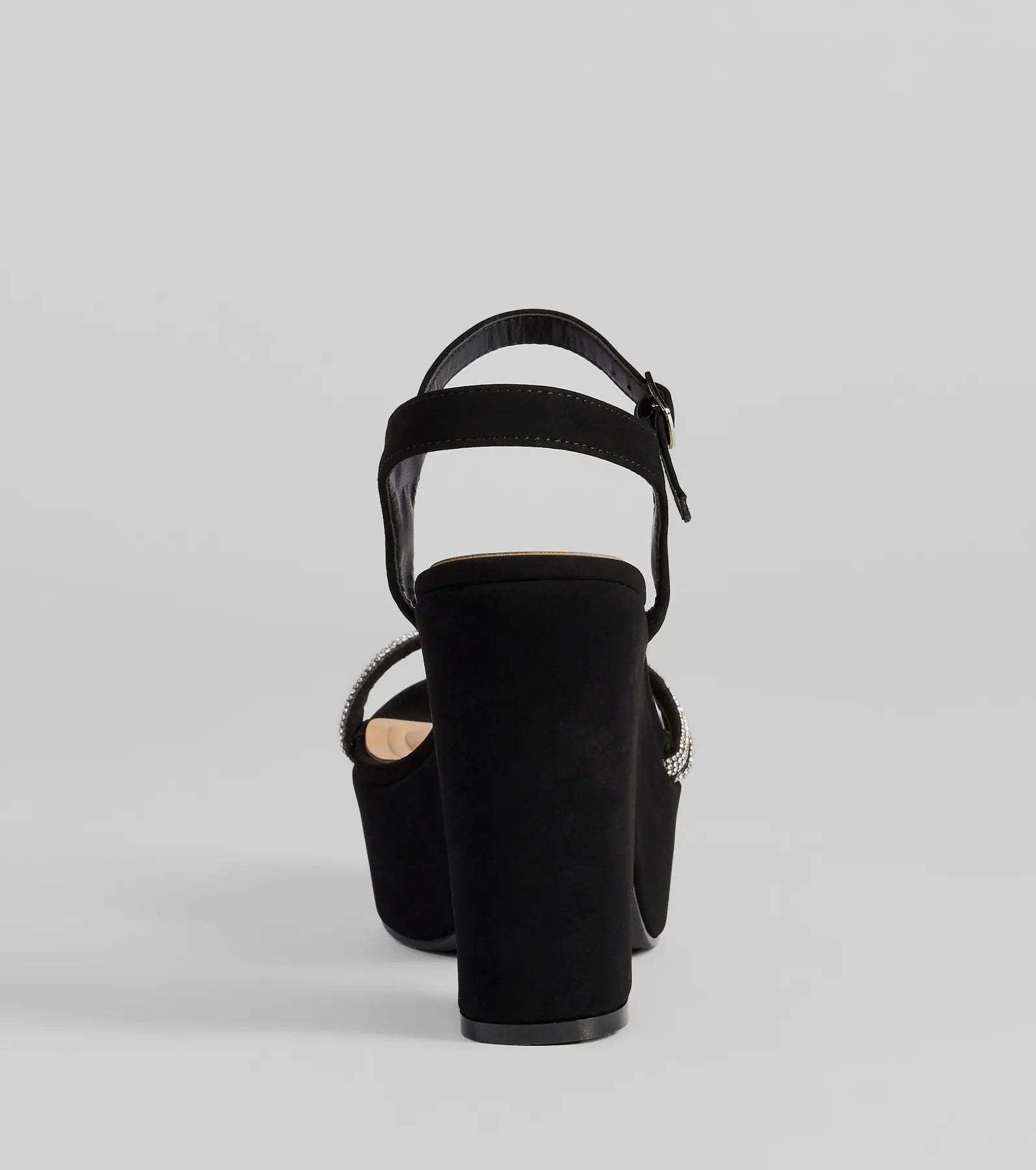 Elevate your look with dazzling spotlight rhinestone platform heels. Featuring a block heel. triple-row rhinestone straps. and cushioned insole for luxe comfort. Perfect for any glam night out!