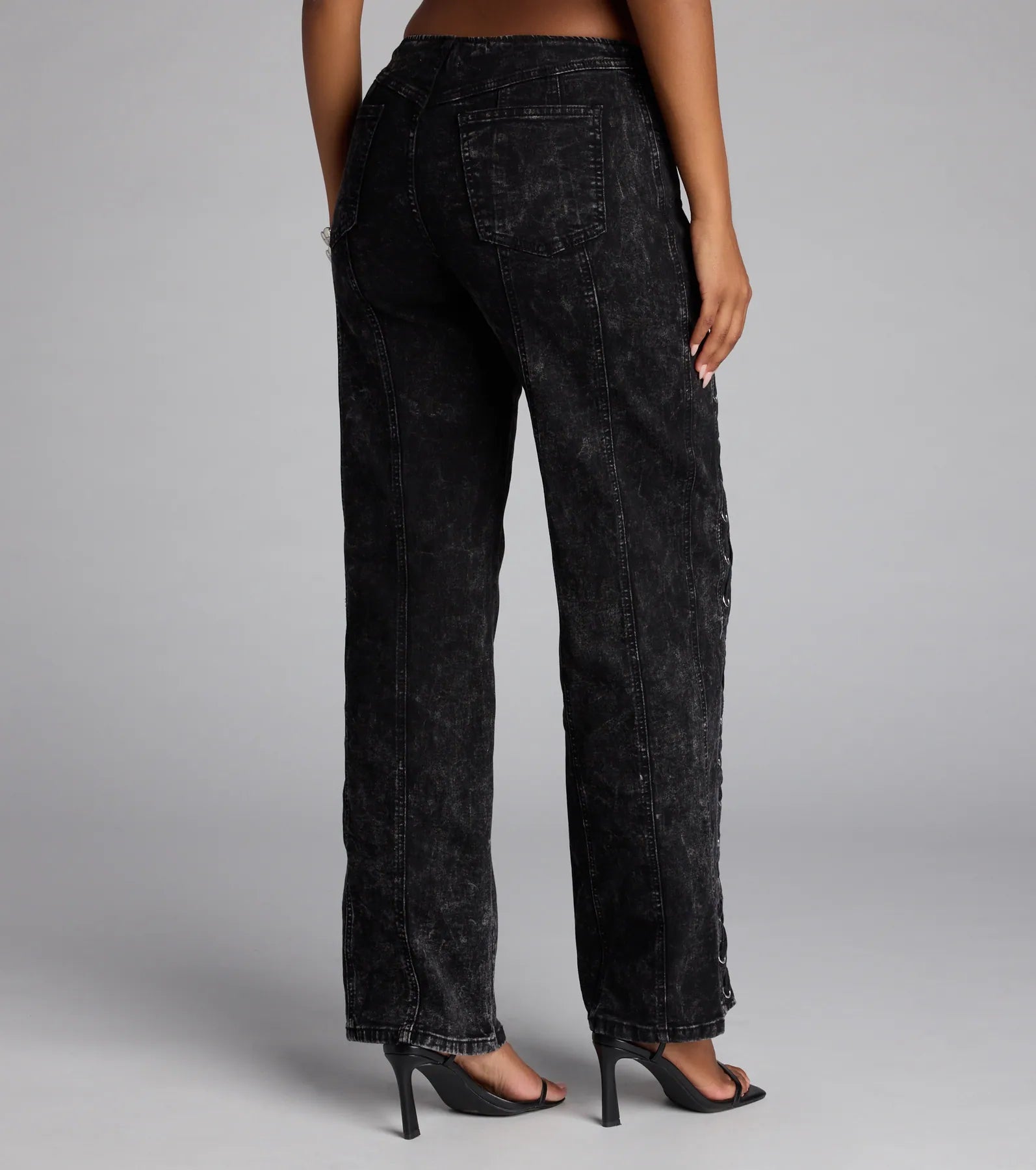 Be the first to review “Dial Up Drama Mid-Rise Lace Up Denim Jeans”