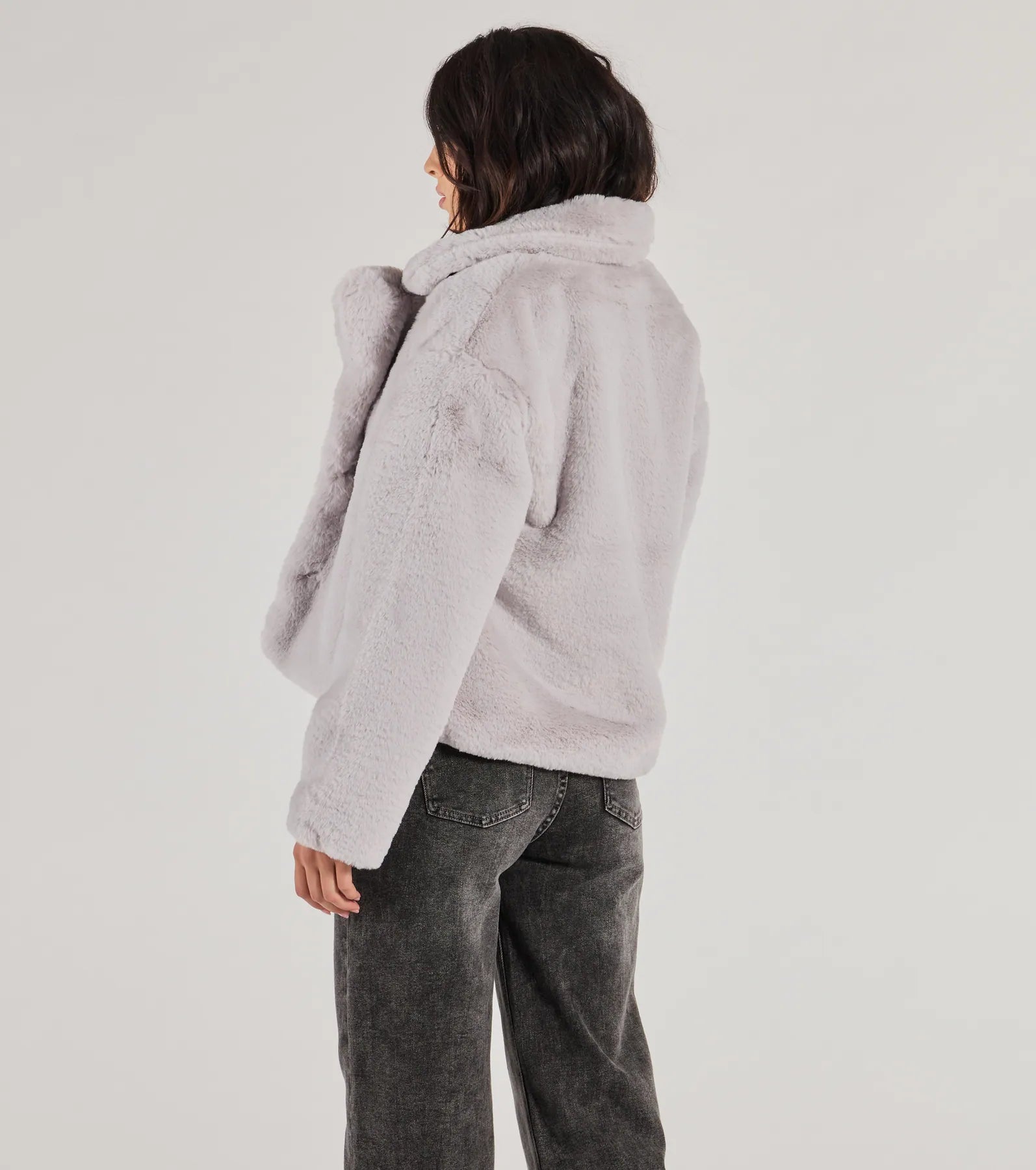 Showcase your diva look in this cropped faux fur jacket designed with lined side pockets to keep your hands warm and a hidden front hook closure that secures the style. Pair with heels and a handbag.