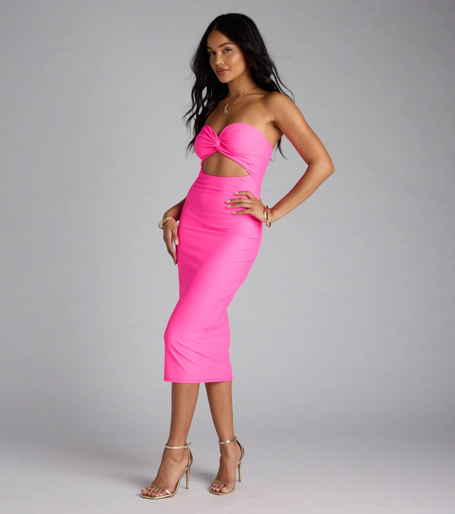 Sexy—ideal for turning heads at your next night out. this tube midi dress delivers electric vibes! This bodycon dress features sultry cutouts that flatter your curves while the tube design offers a sleek. modern look.