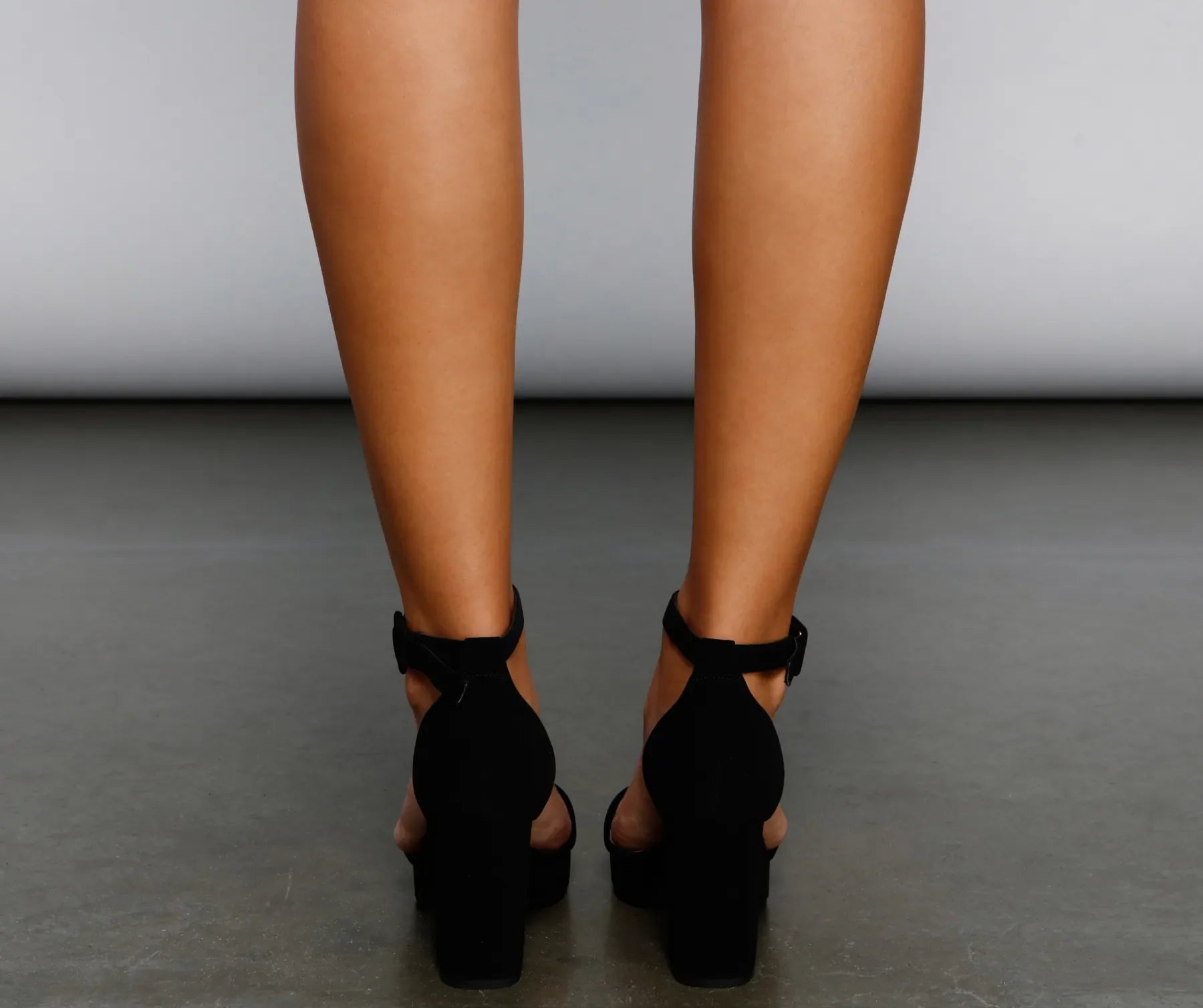 Channel a chic look any day with basic block heels that go with dressy and casual outfits! The heels feature a closed-back. an adjustable ankle strap. an open almond toe with a strap over the toe. a wide platform. and a block heel. The heels are composed of a faux nubuck material. Complete look with a .