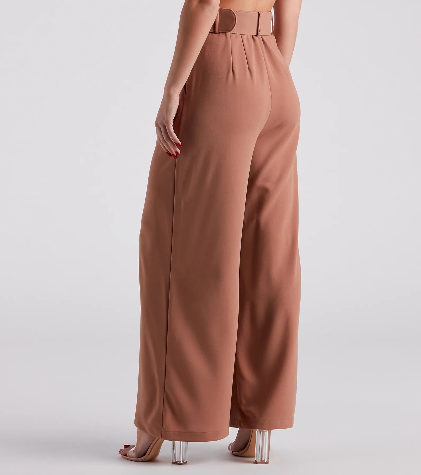 Flip it reverse and take your style to a 60s-inspired era! These crepe trouser pants are effortlessly chic in a high-rise waist with an adjustable belt. hidden front zipper and hook-eye closures. side pockets. pleating. and a wide-leg silhouette. Complete the look in a bodysuit and