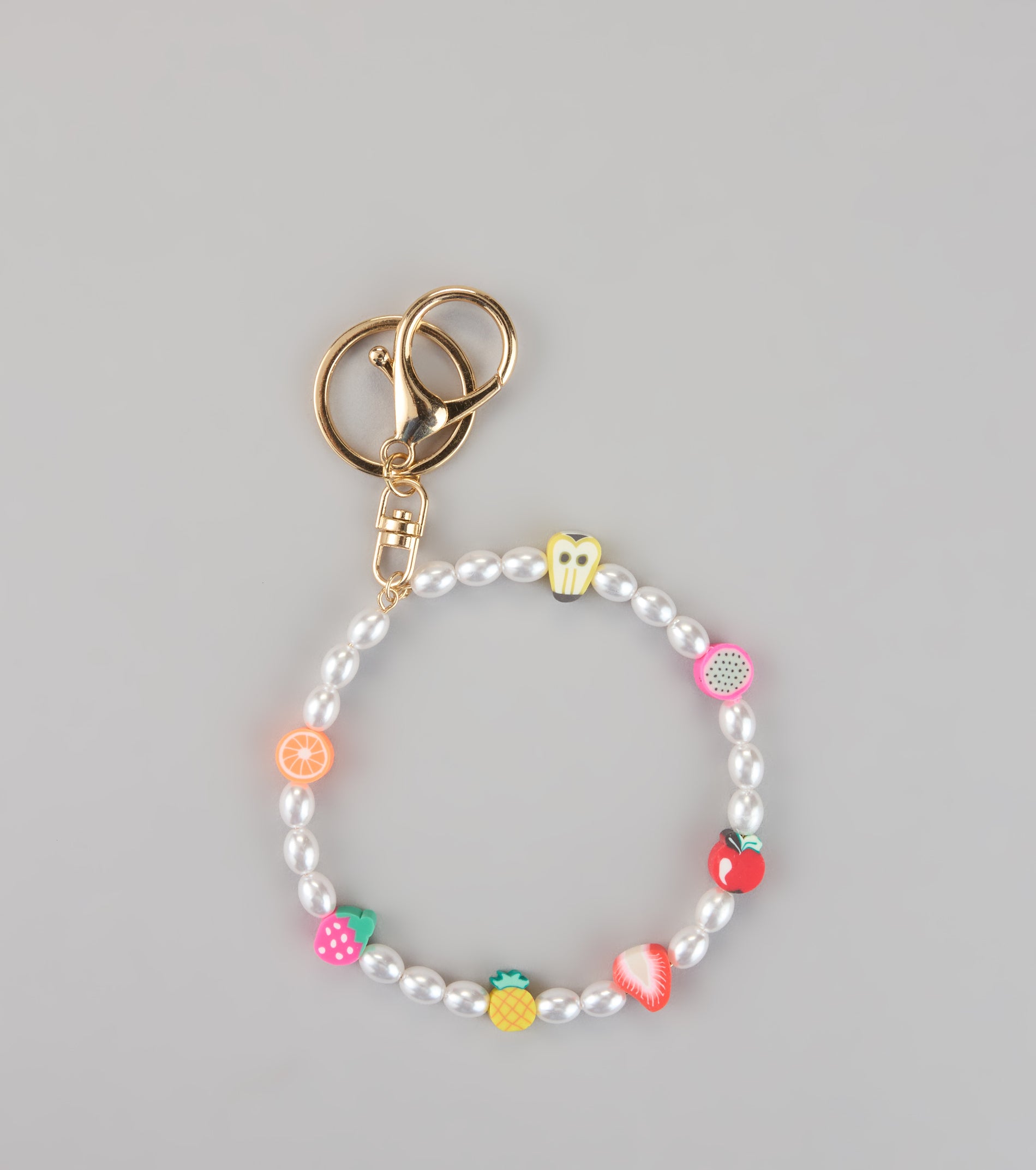 Add a little zest to your everyday. This fruity faux pearl wristlet mixes playful vibes with polished shine—perfect for clipping to your bag or keys when you want a pop of fun that still feels chic.