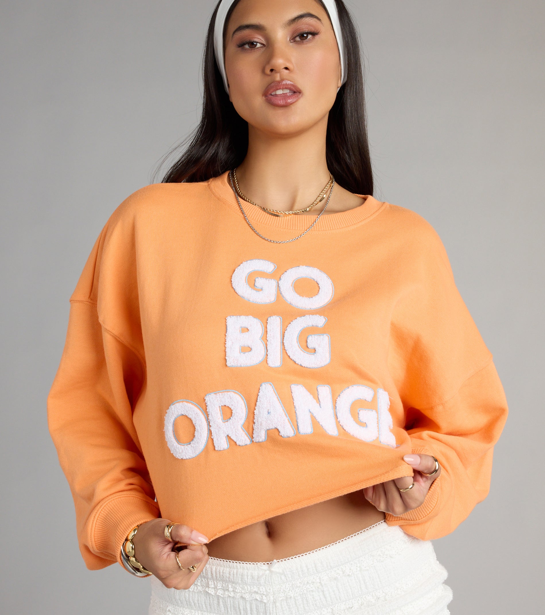 Show up and show out—this fuzzy letter pullover brings that Go Big Orange® vibe with a side of comfy-cute. Perfect for stadium snaps. campus strolls. or couch cheering.