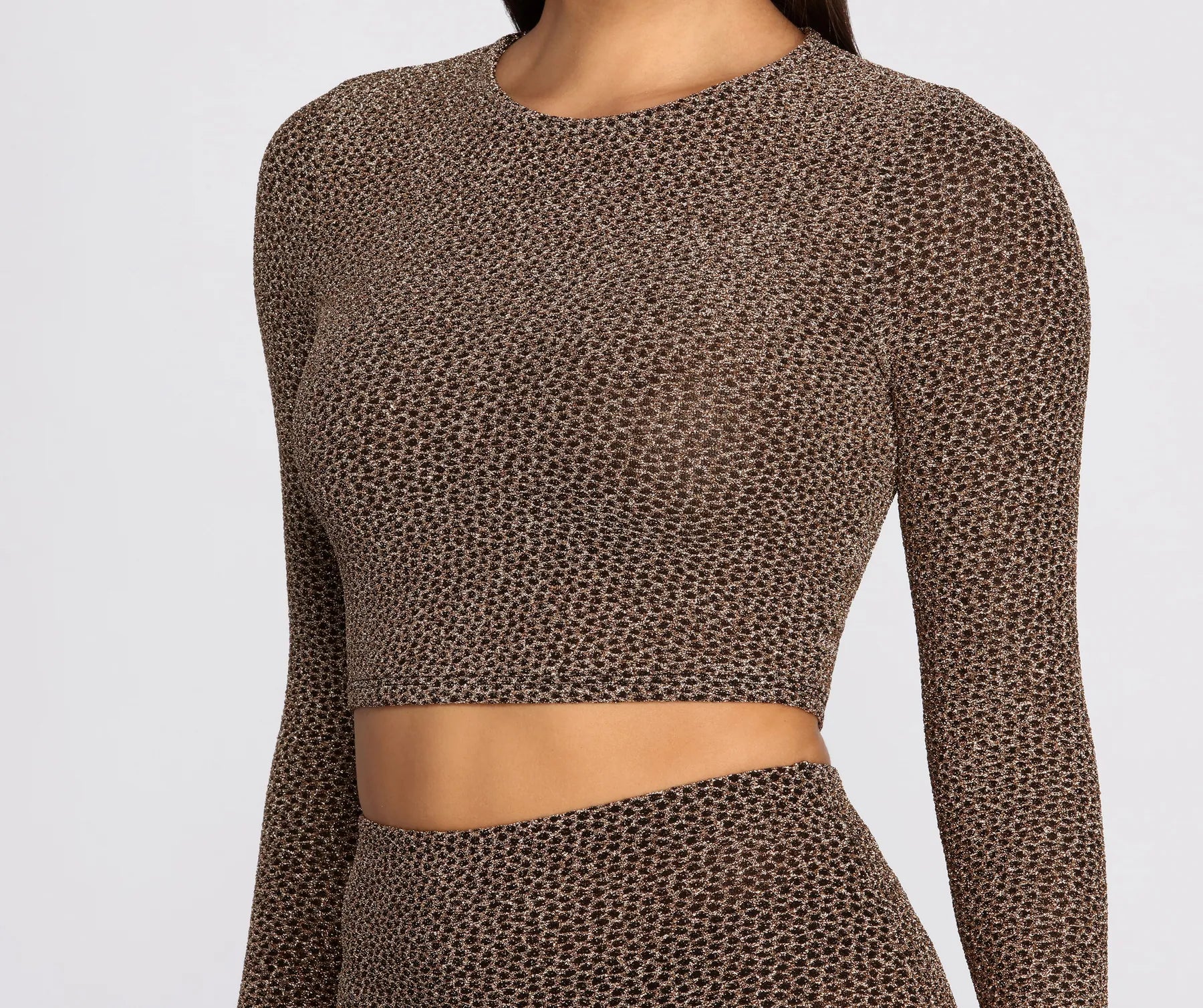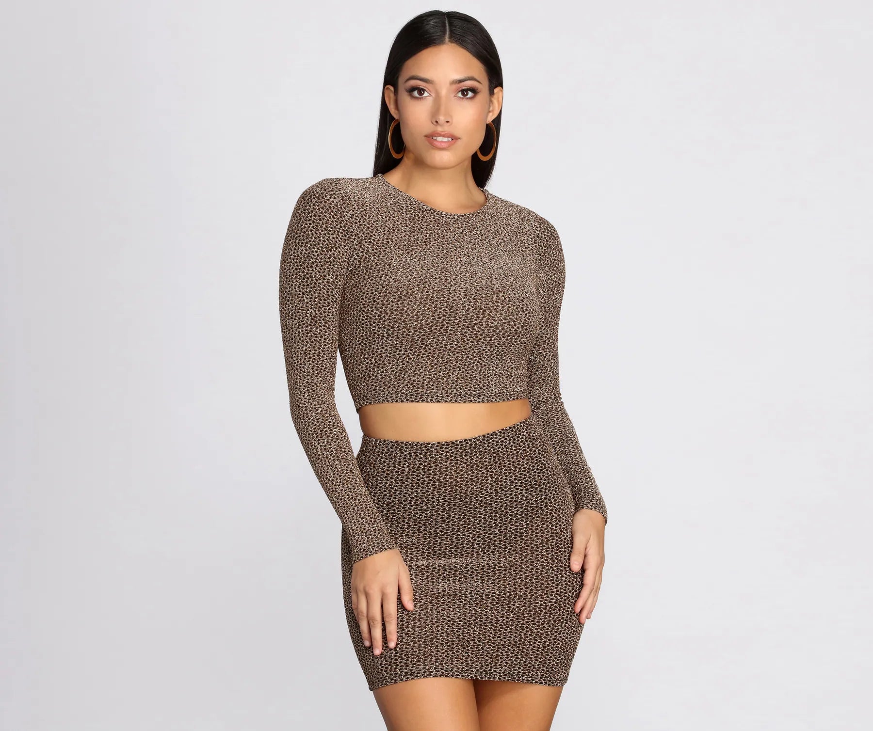 Add a little glitz and shimmer to your party look with this luxe crop top! Pair with the matching mini skirt for a beyond gorg look.