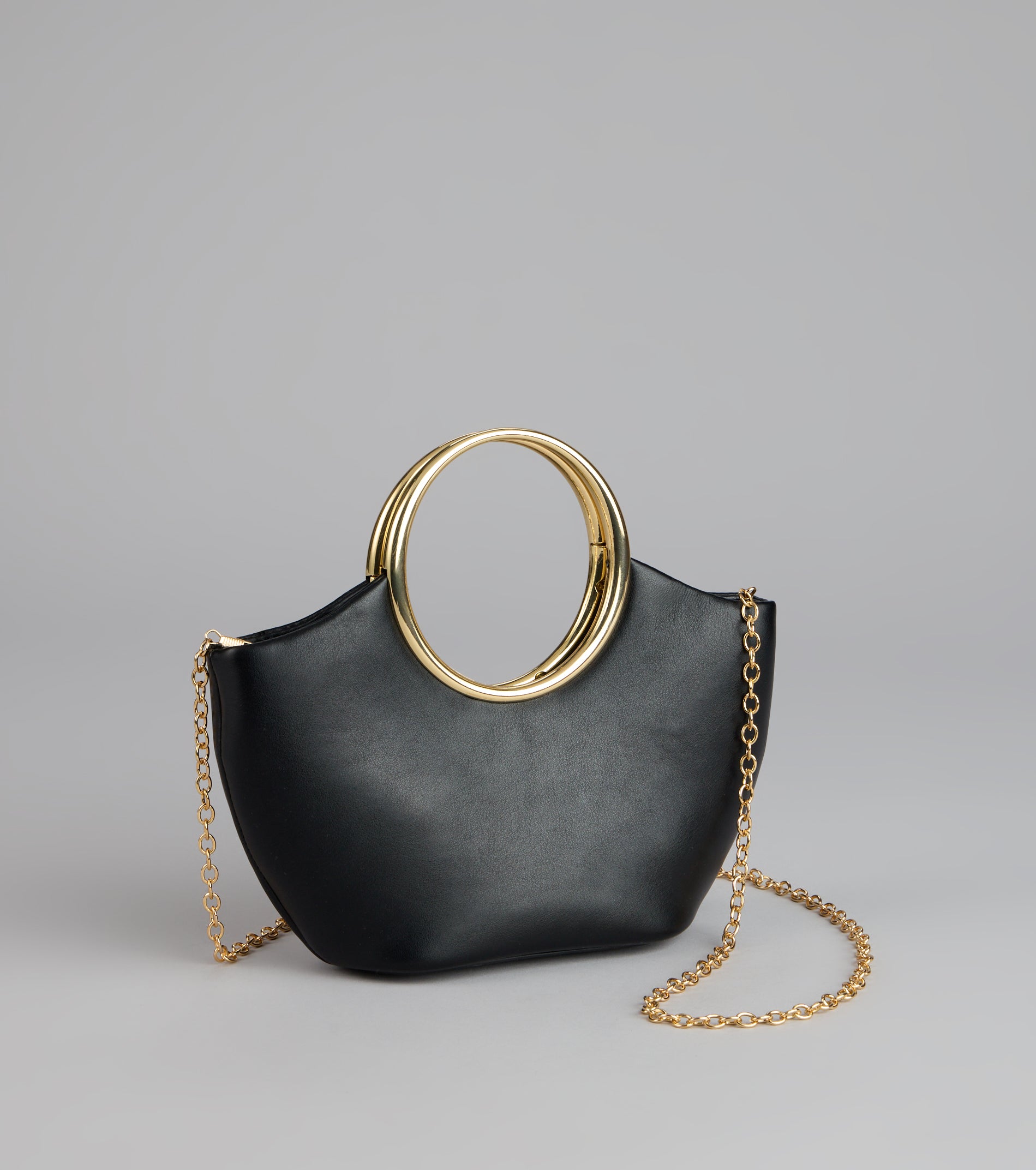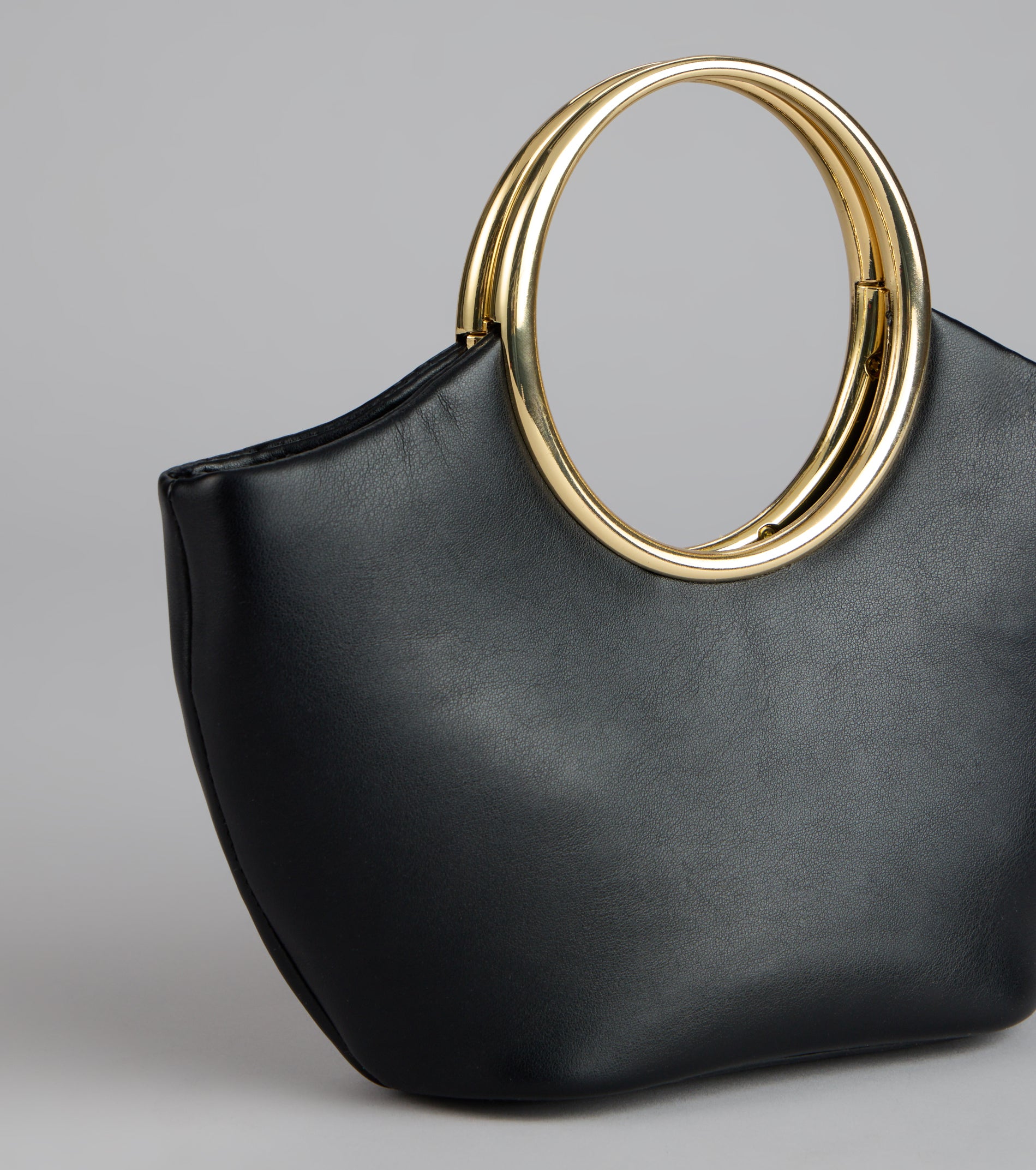 Polished and practical—this mini tote bag keeps it minimal with a structured faux leather body and bold O-ring handle. perfect for dressing up any look.