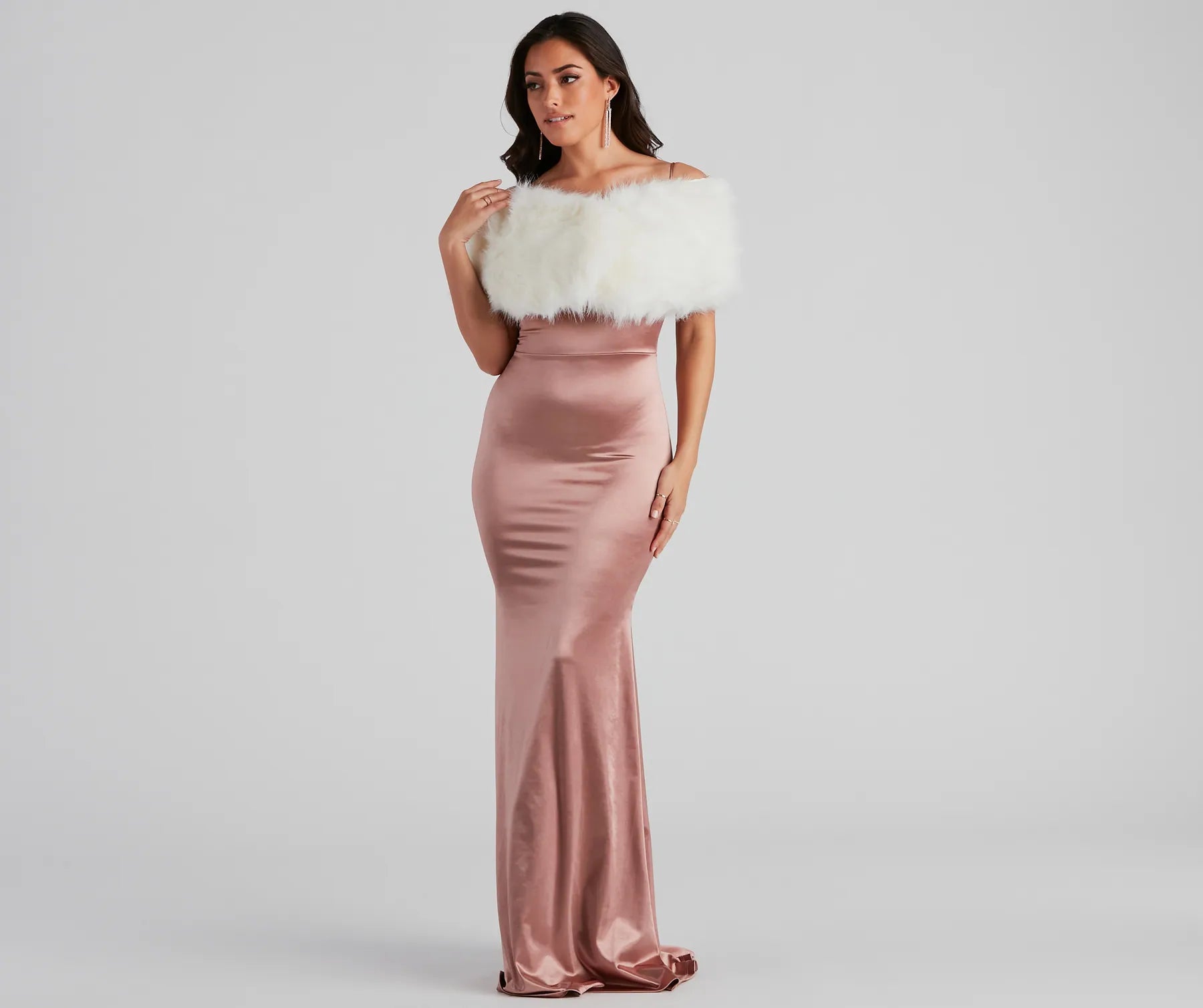 This season. add this glam shawl that brings luxe to your outfit. It features a long design with a hook-eye closure for an optional closed look. The shawl is composed of a faux fur and is lined with a satin-like material. Complete your look with a curve-hugging and a sleek clutch.