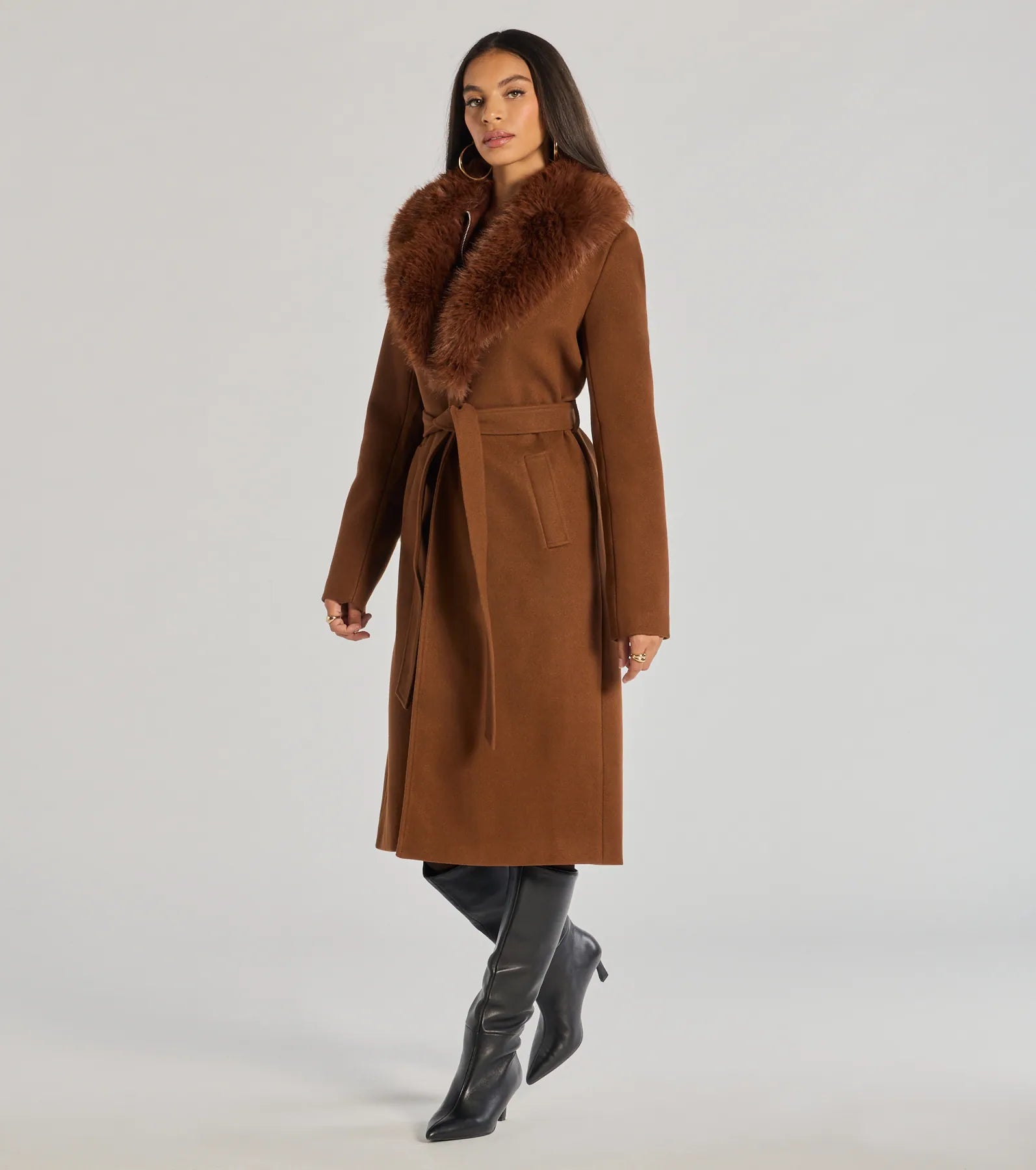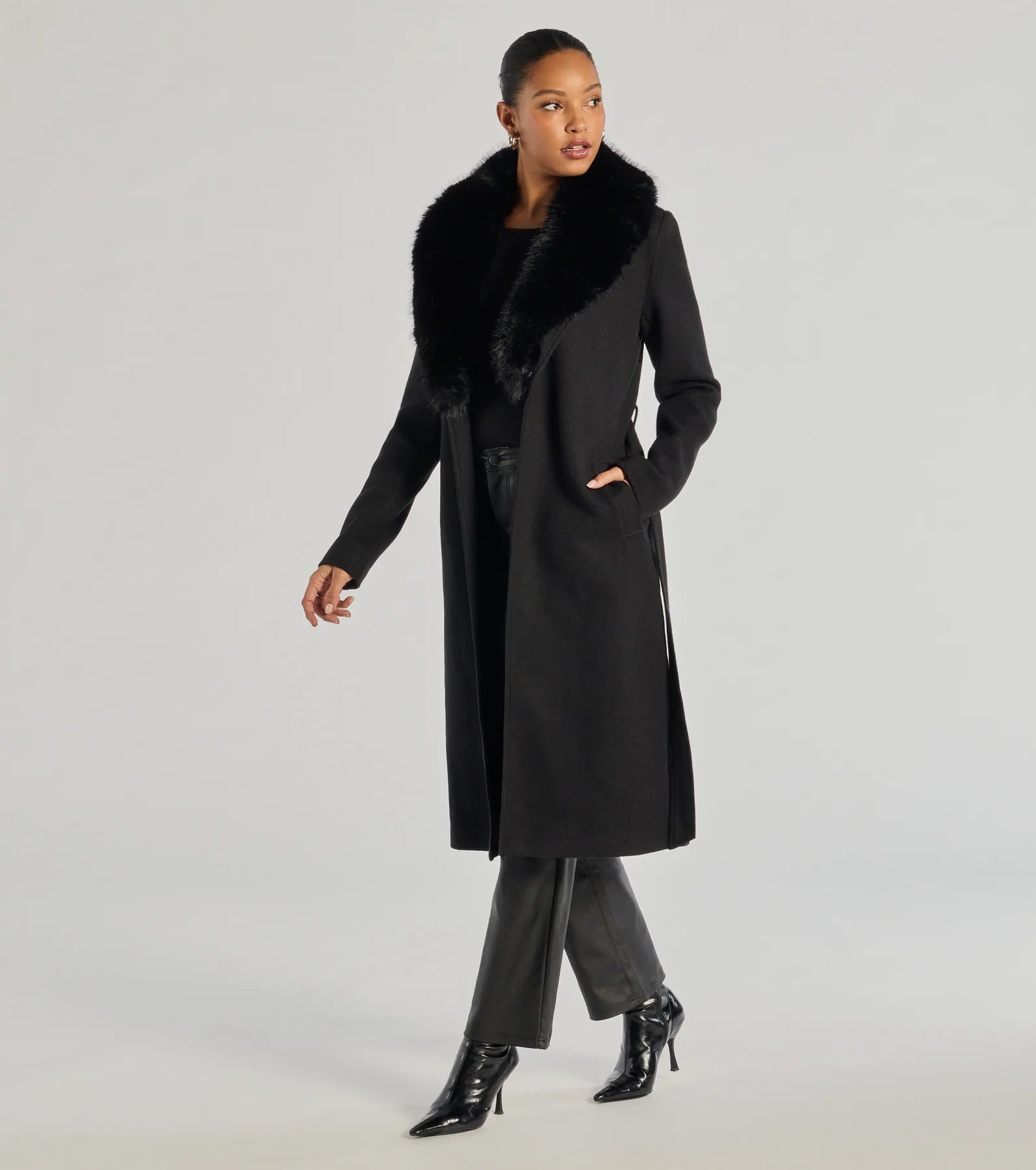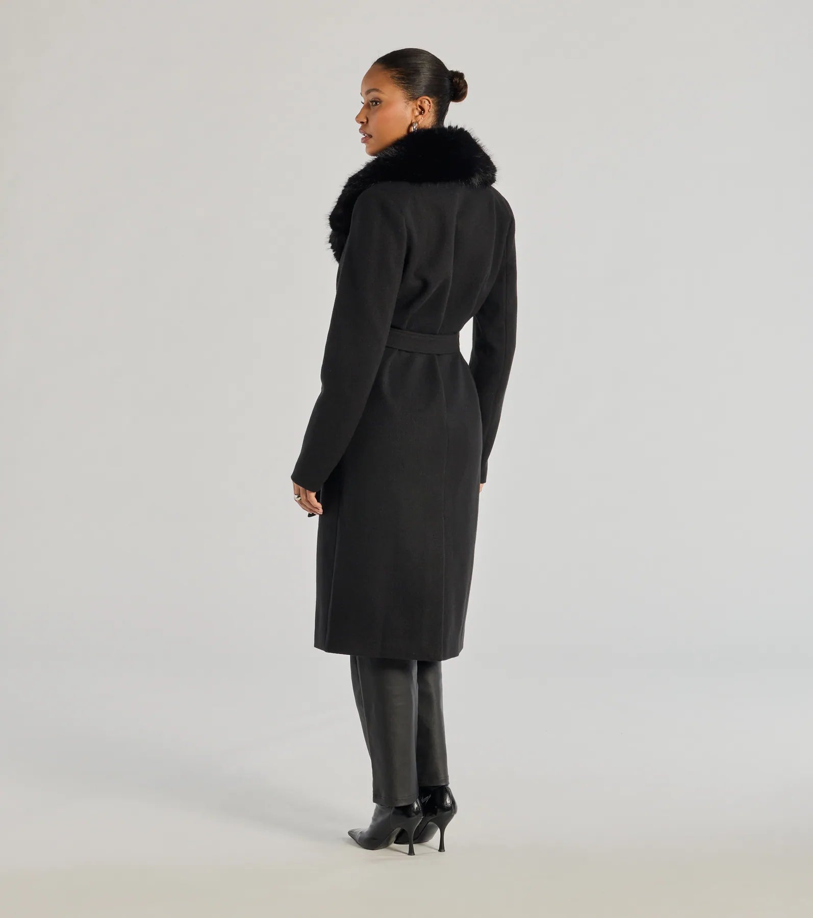 - Removable faux fur collar