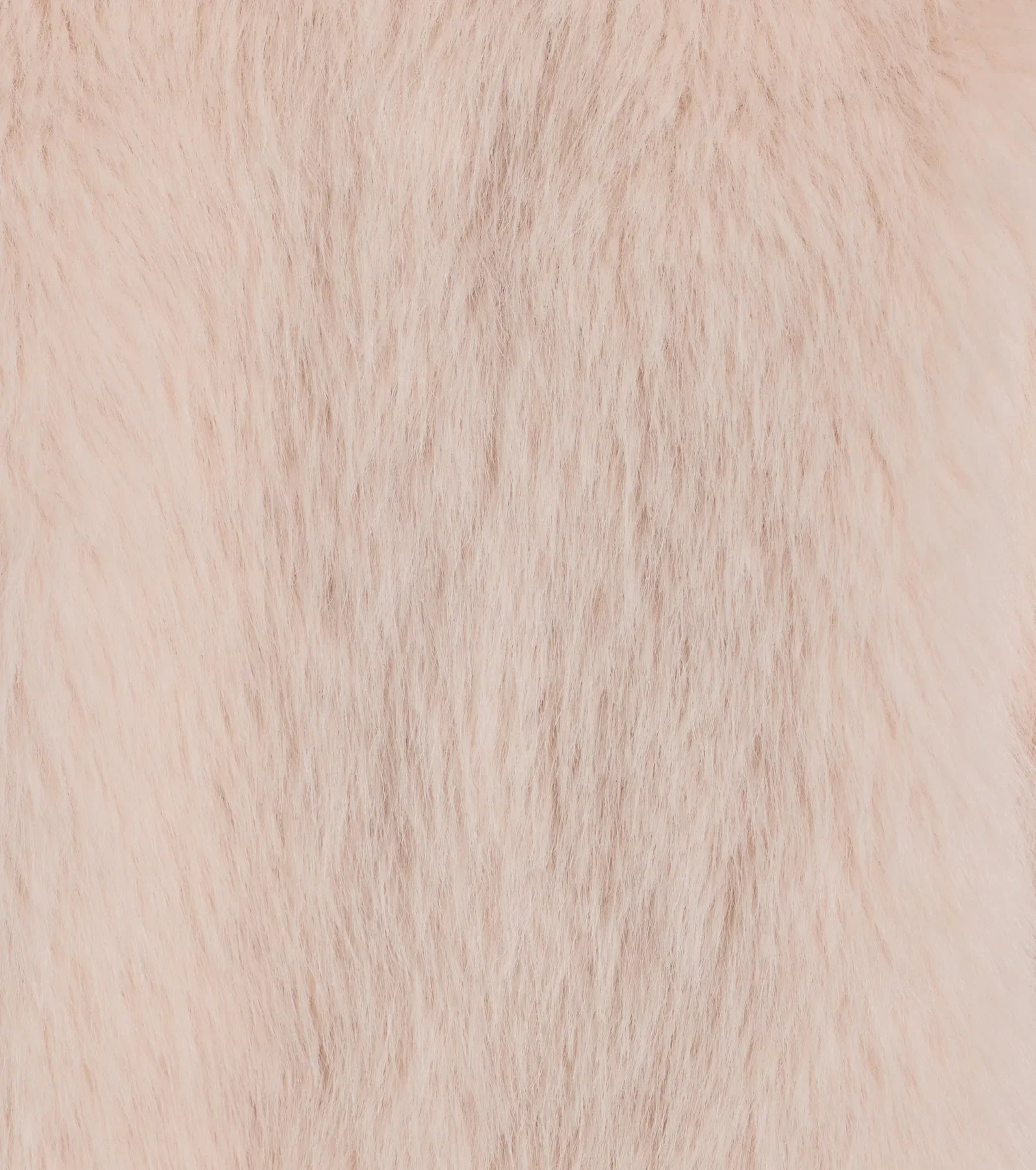 Layer on the luxe vibes with this faux fur cropped jacket featuring a wide collared neckline. long sleeves. an open front. and a relaxed fit. Style with a crop top. faux leather pants. and booties for a night out!