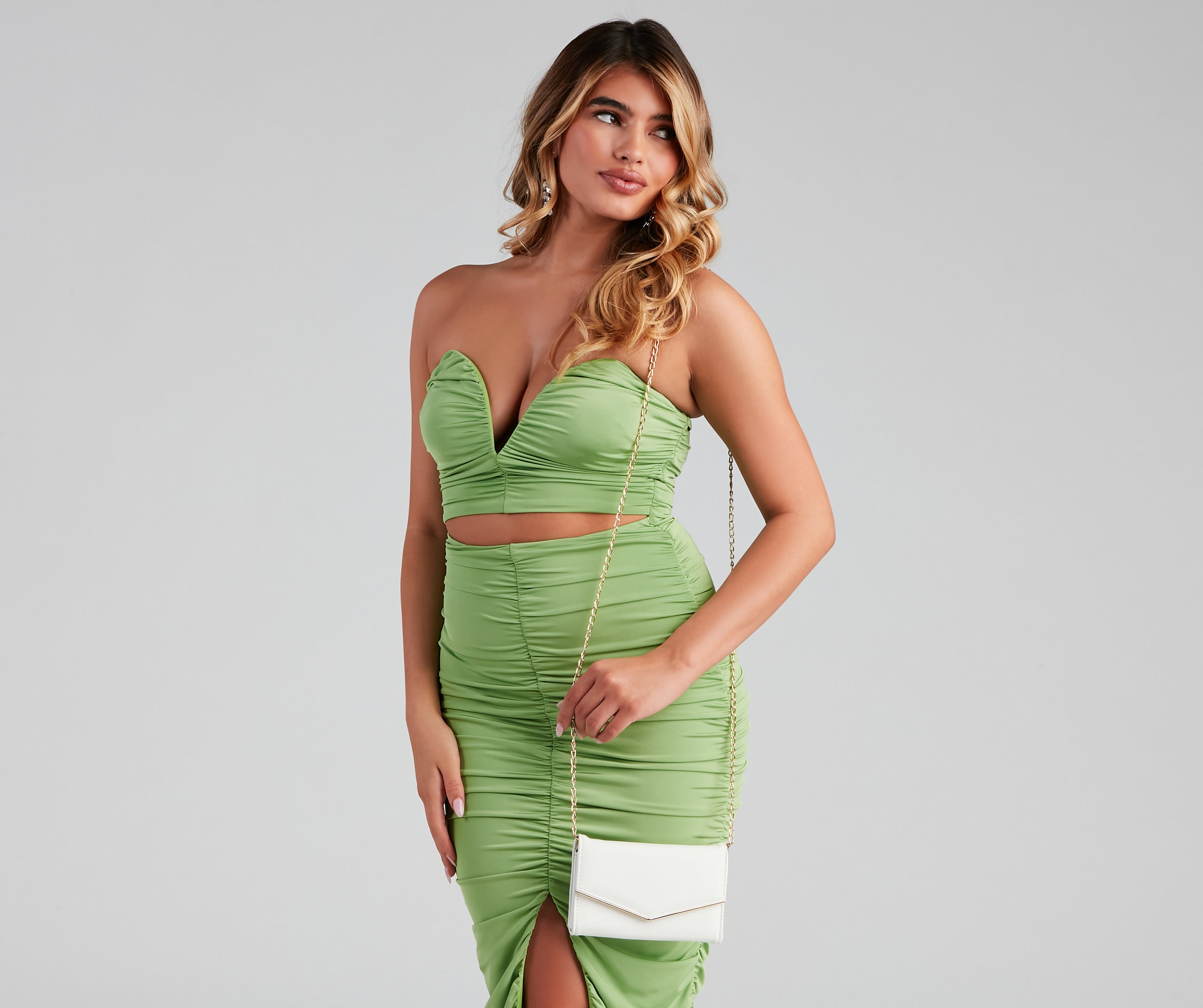 A classy lady like you shouldn’t be without this wallet crossbody! It features an envelope flap with snap closure. a detachable shoulder and wrist strap. a foldout design with card and money slots. and one large pocket. Complete the look with a chic leather