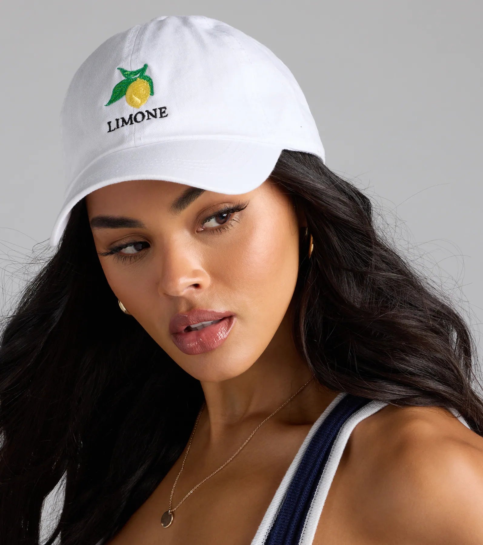 This baseball cap will be your main squeeze all season long! With a trendy embroidered front with a script that reads Limone and an adjustable back strap. this hat is perfect for any casual plans.
