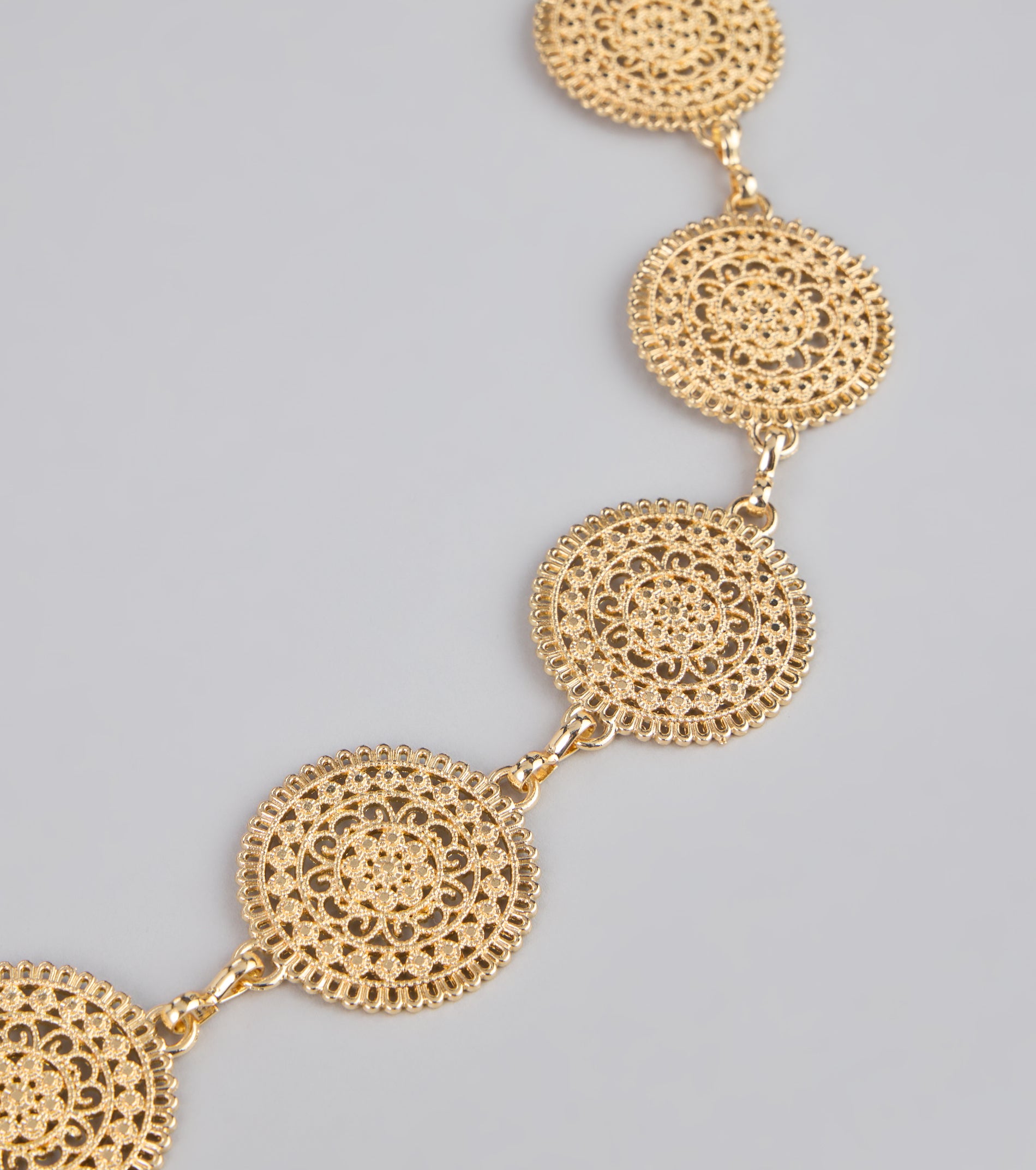 Your waist just found its jewelry moment. This round filigree chain belt brings delicate detail with major styling power—perfect for styling with any outfit.