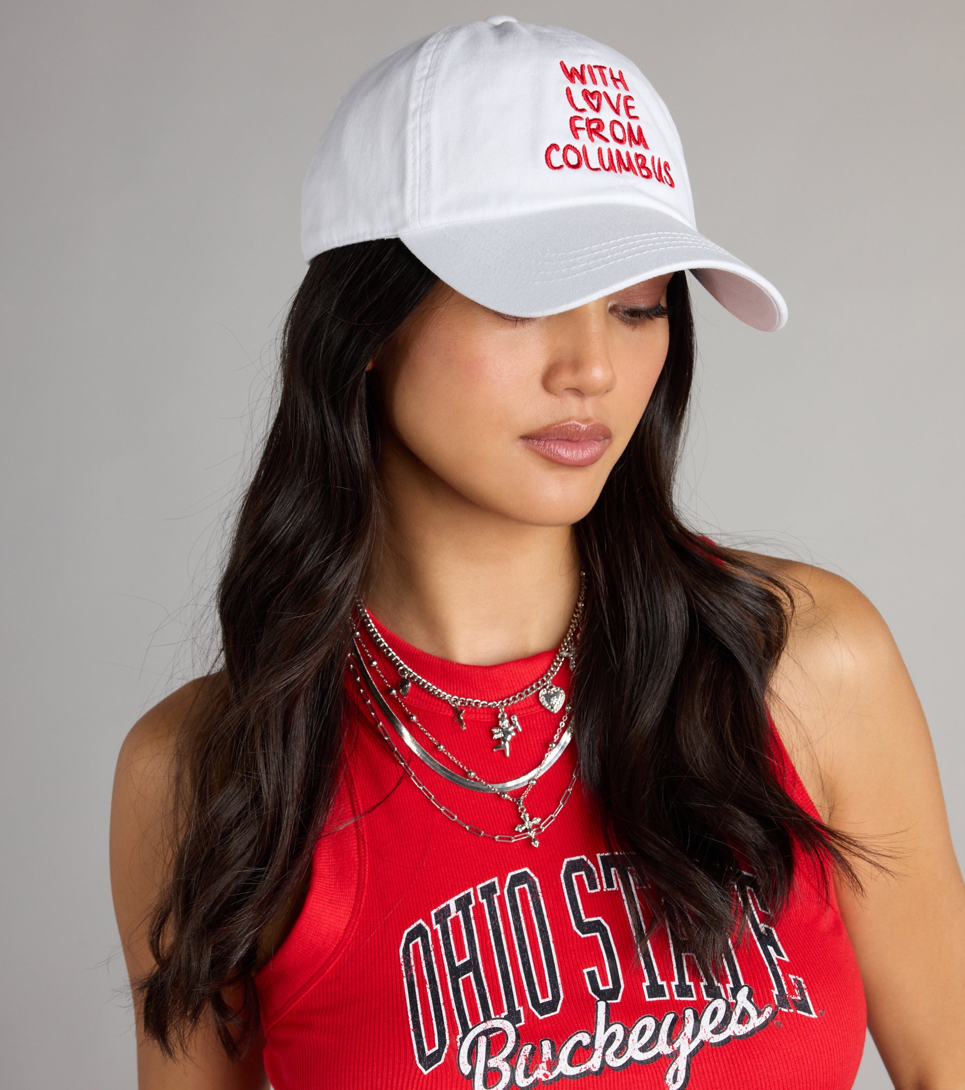 PSA: She’s repping her roots and looking cute doing it. This Columbus cap is giving casual cool with a sweet little twist—aka your new go-to for coffee runs or campus hangs.
