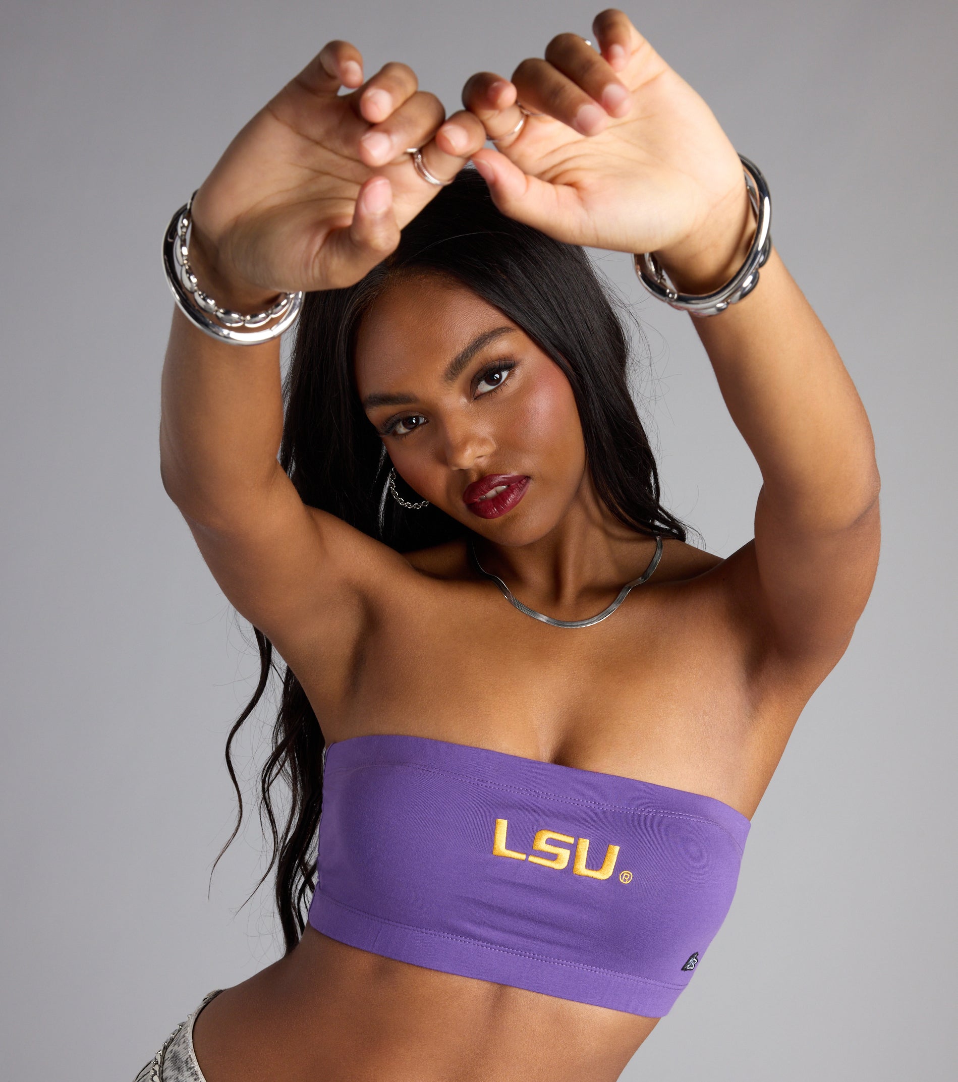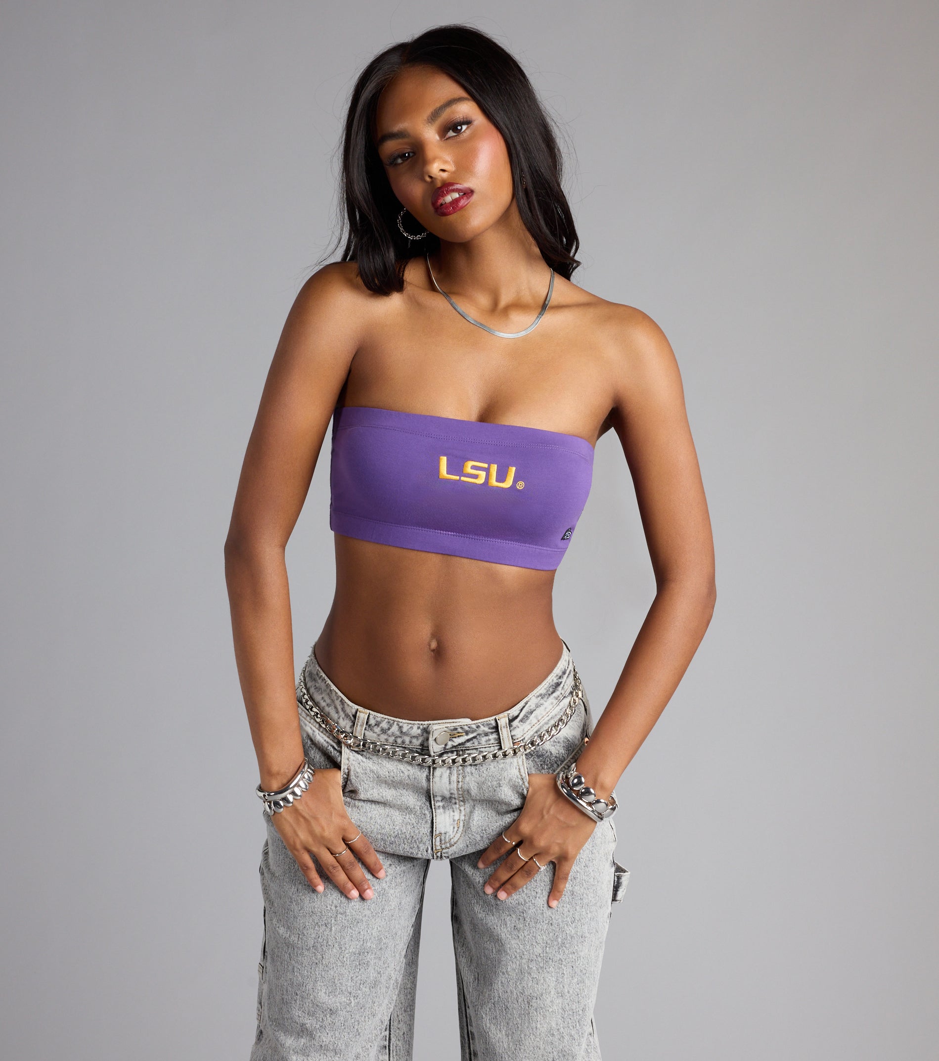 Tailgate on top. party on repeat. This bandeau crop top brings all the school spirit without sacrificing your drip—perfect for pairing with jeans for a trendy vibe.
