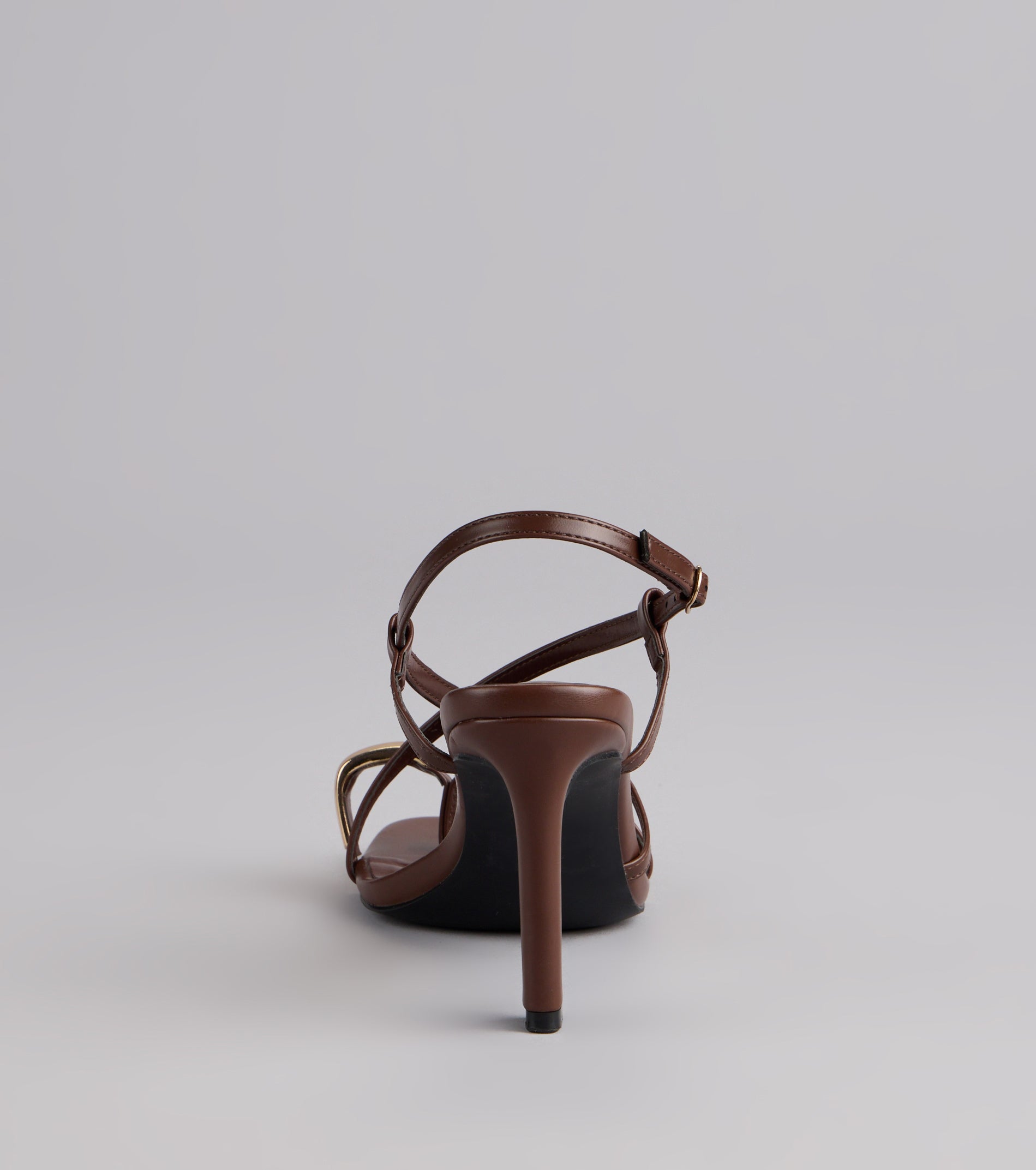 These strappy stiletto heels were built for chic nights out. With sleek straps and a gold hardware toe ring accent. they’re the perfect balance of classy and cool for weeknight dinners to weekend RSVP’s.