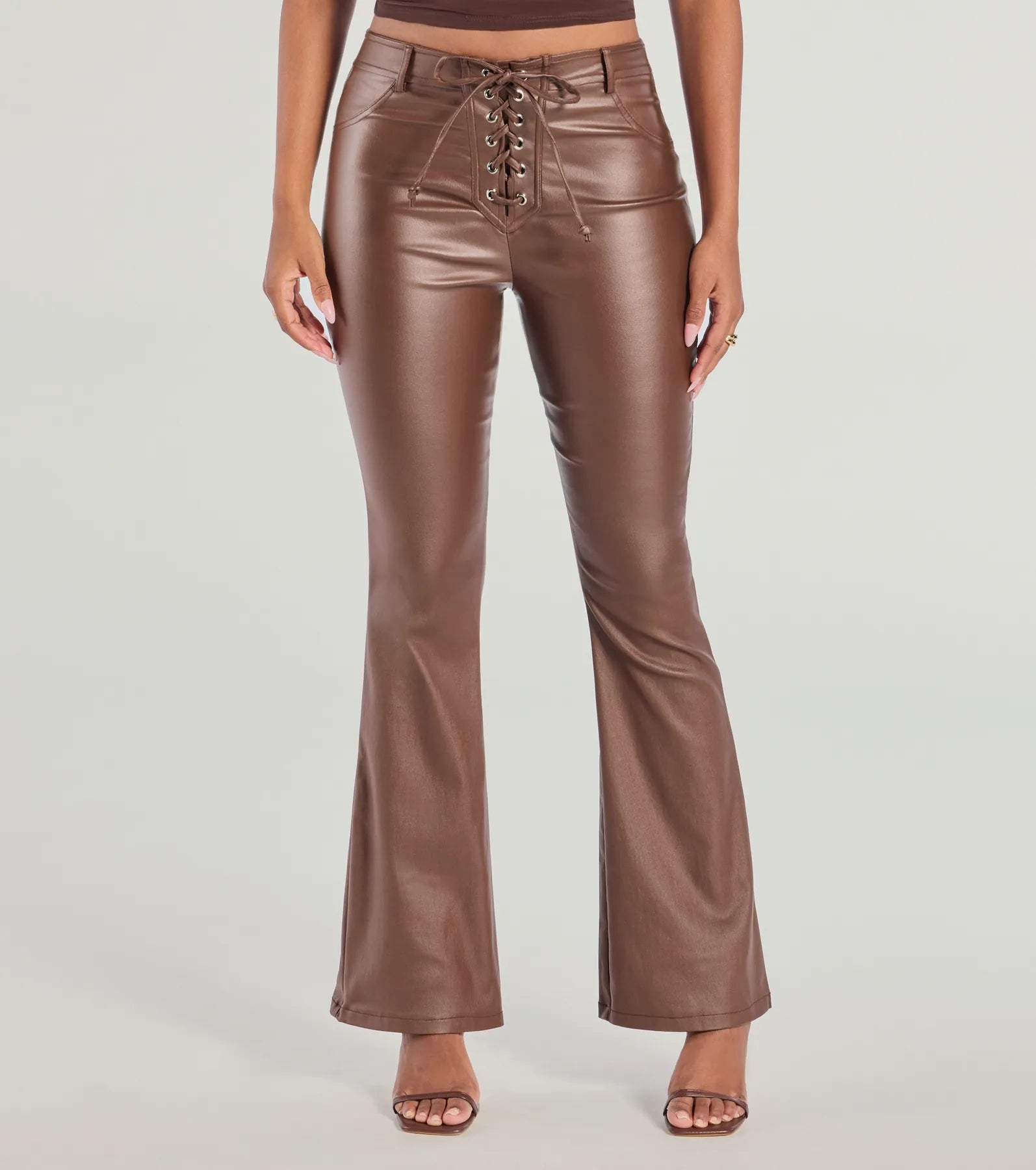 Ready For Sleek Lace-Up Flare Faux Leather Pants