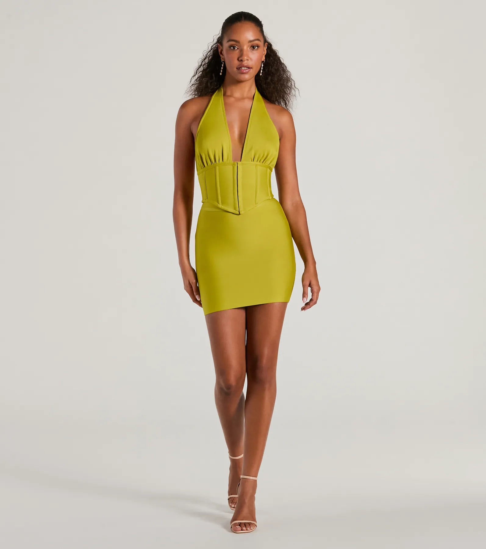 This flirty and sultry bandage mini skirt has everything you need to stand out! Featuring a high-rise waist. a bodycon silhouette. and a mini-length hem. it flatters your curves with every move. Crafted from a seamless bandage knit fabric designed to fit like a glove. Complete the look with the matching top.