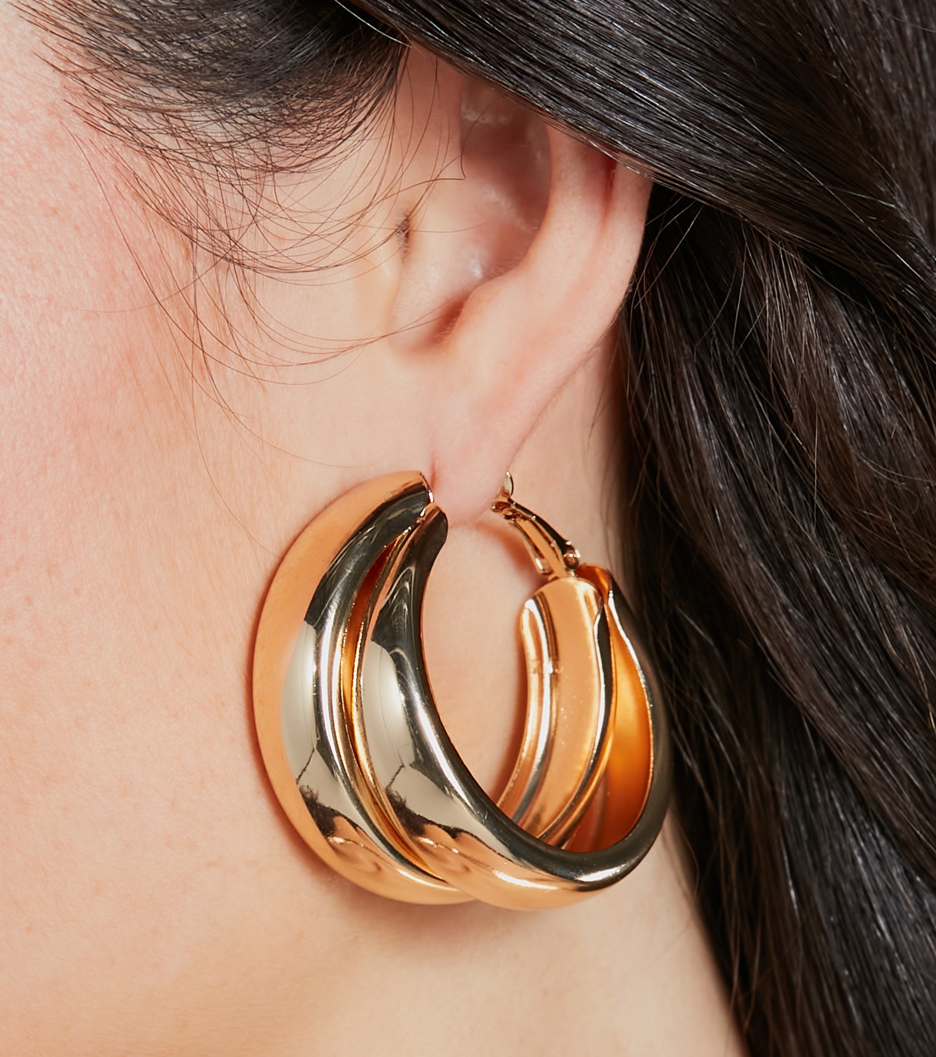 Your mind isn’t playing tricks. these hoop earrings feature an eye-catching double-hoop design with a post-back closure for a secure fit. Complete the look with a fab .