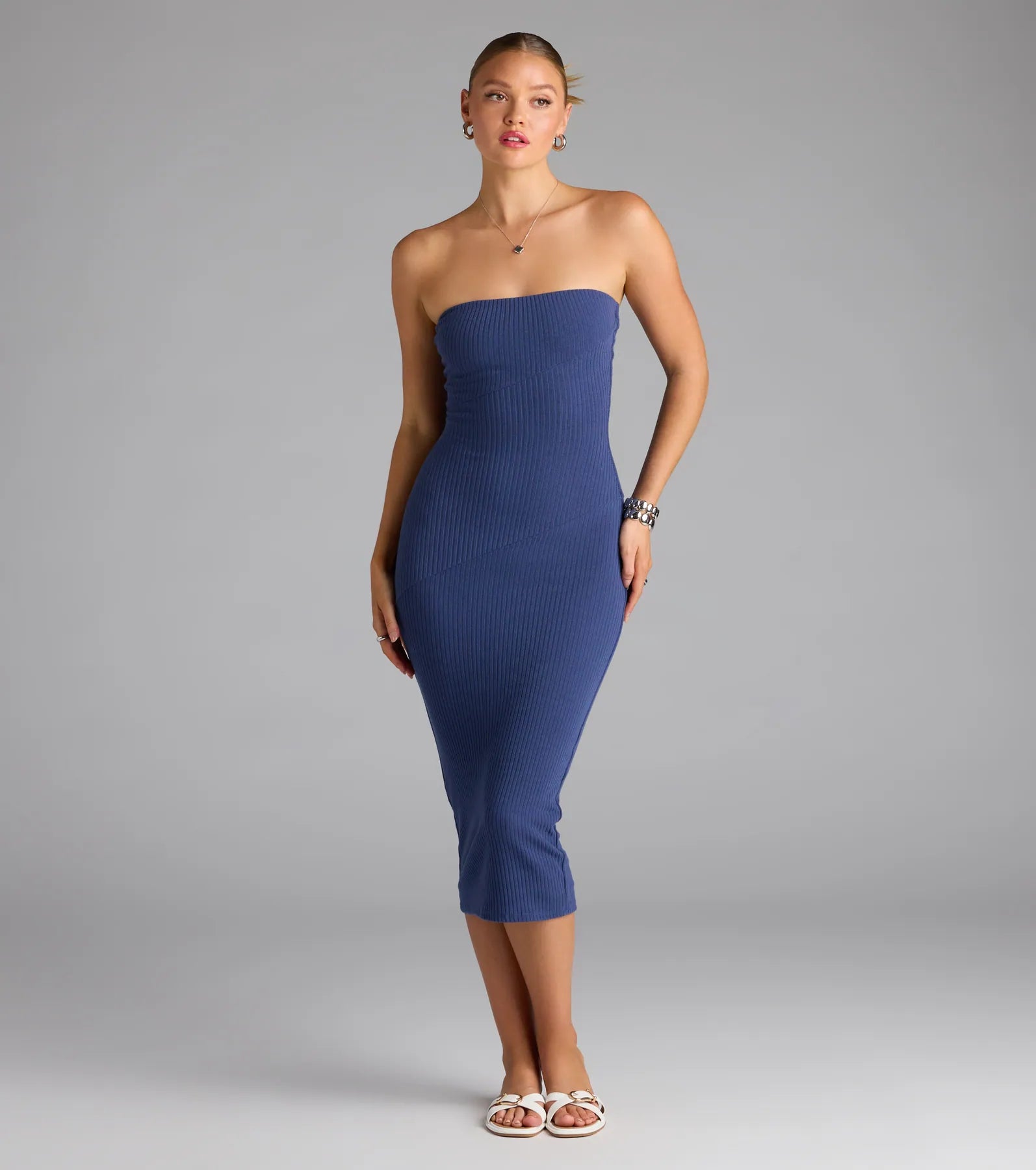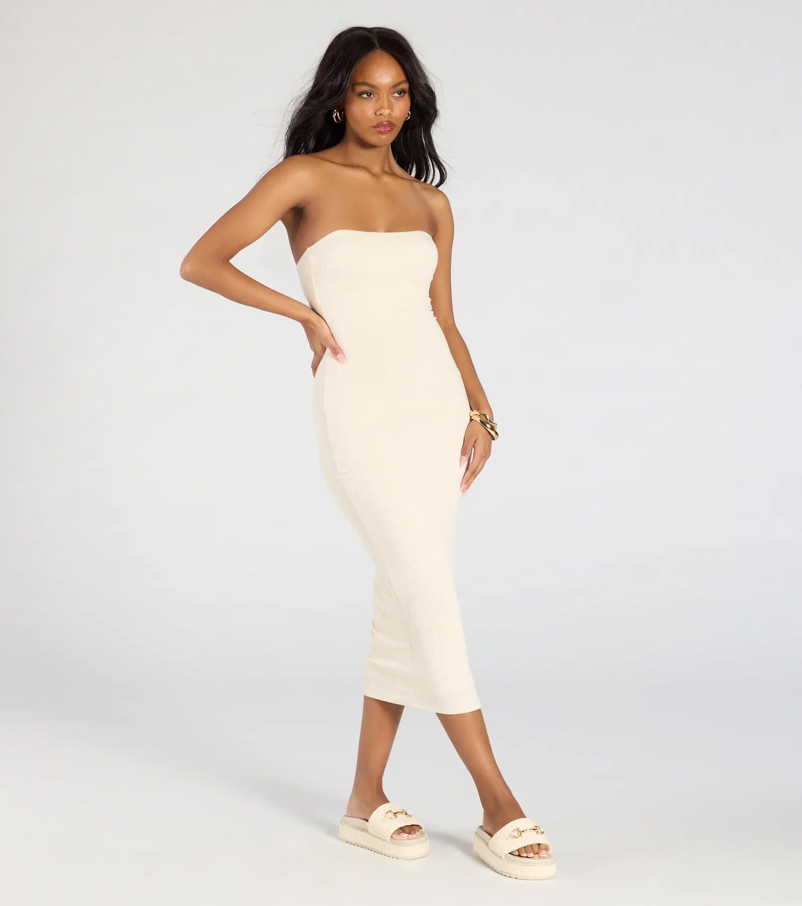 Simply Chic Strapless Ribbed Knit Midi Dress