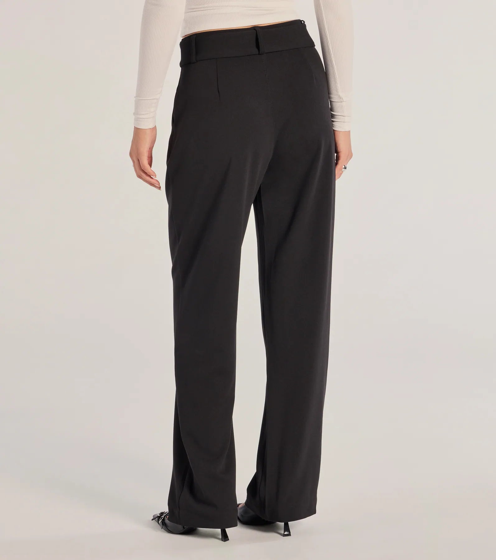 - High-rise belted waist. back elasticized band