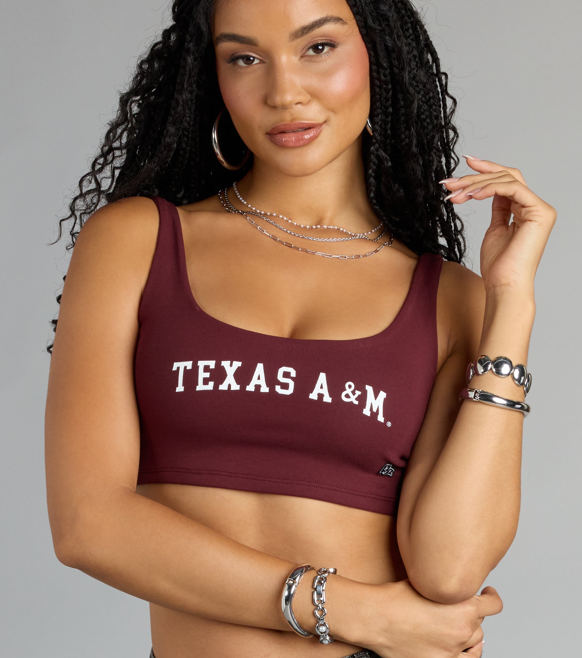 Serving school spirit with a side of sass. This Texas A&M® cropped tank top brings the fit. the flex. and the confidence boost you didn’t know you needed.