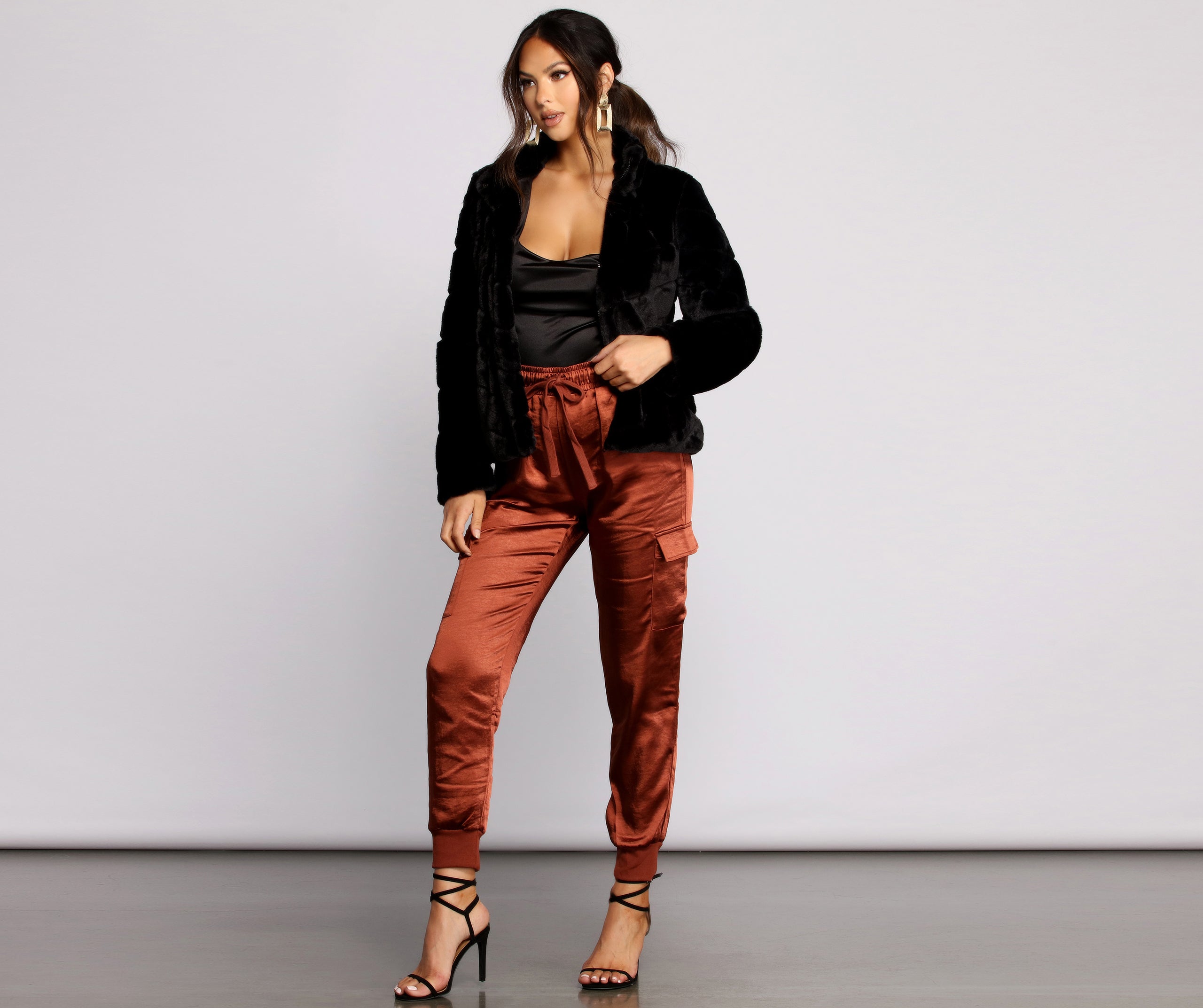You’ll be feelin’ so extra in this fabulous faux fur jacket! It features a complete zip and snap button front. a faux fur exterior with seam detailing to give the illusion of stripes and a smooth inner lining. Layer this jacket over a and  for an elevated look.