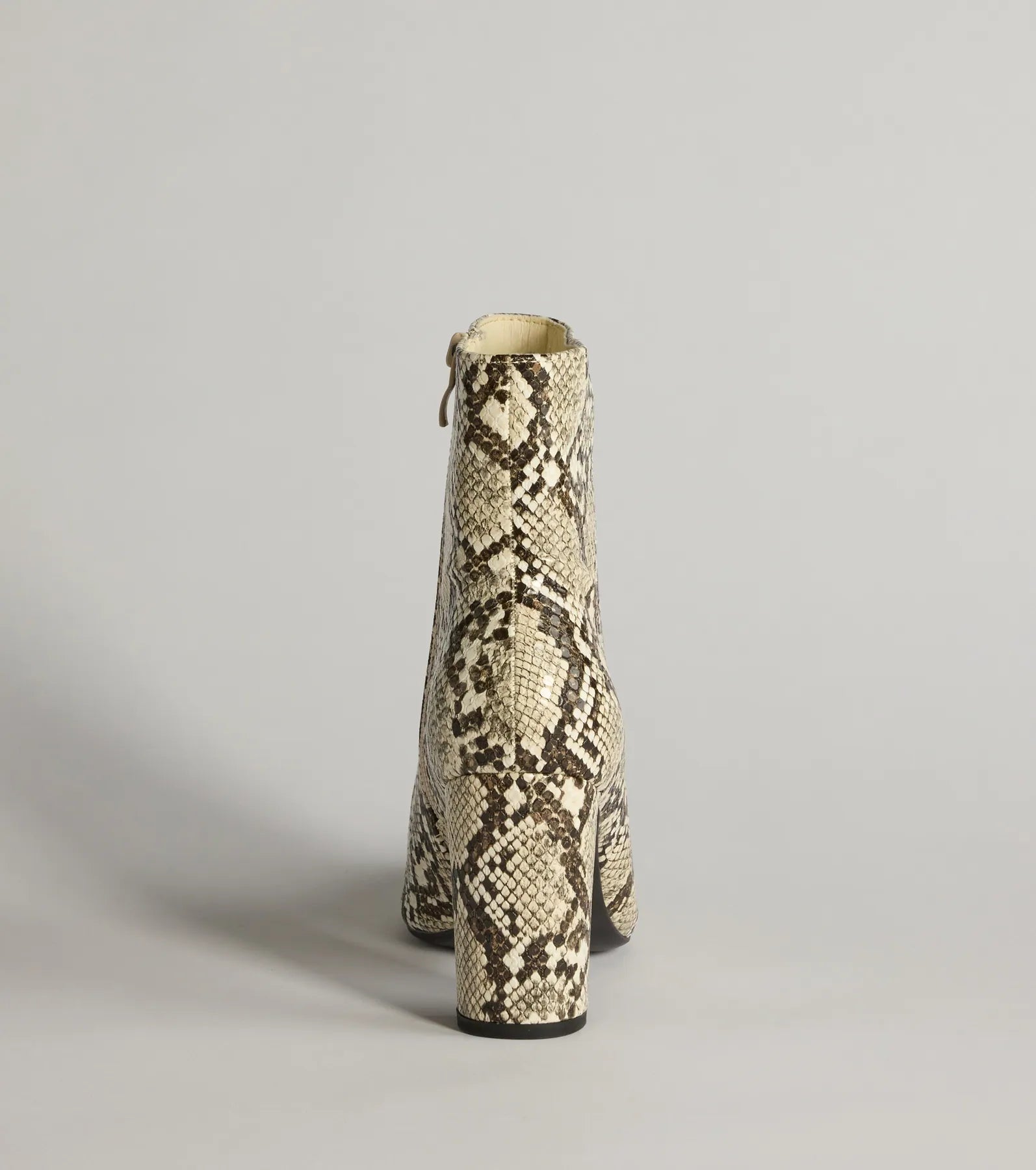 Strut in these fierce faux leather snake print ankle booties showcasing a block heel and inner zipper closure that secures the style. Pair with a purse.