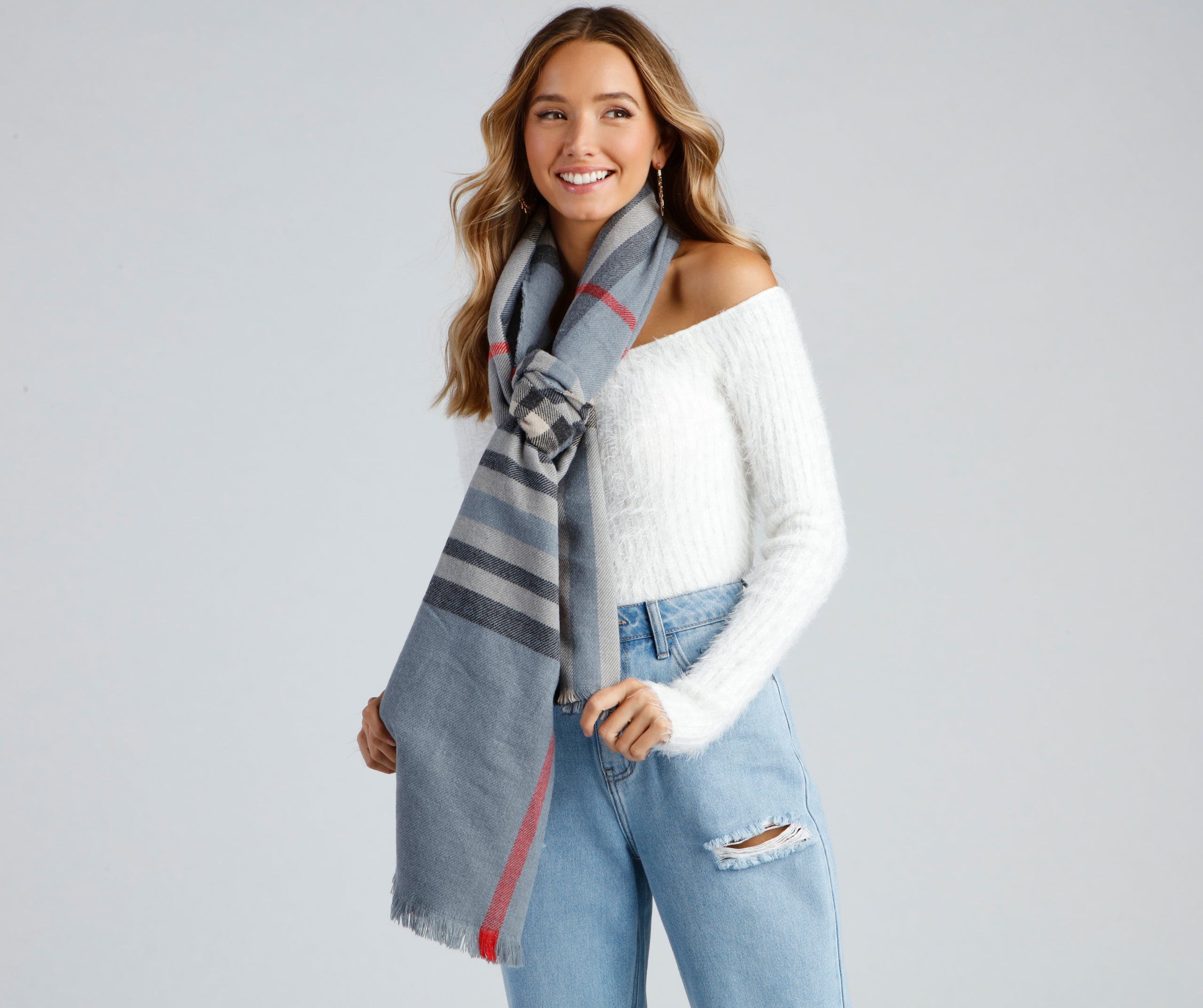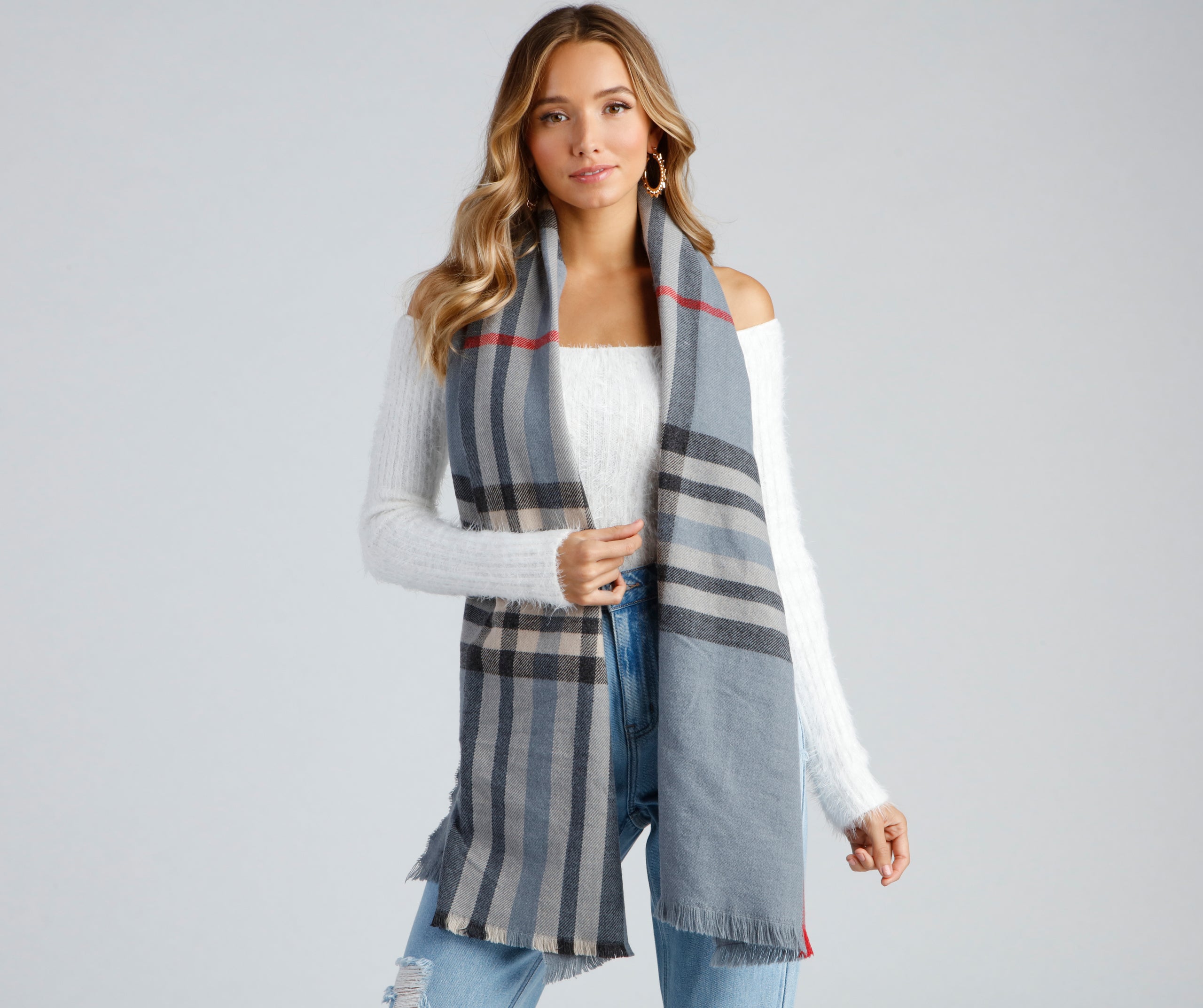 Another cold day in the city? This plaid scarf will keep you cozy and stylish! Complete the look with a fuzzy sweater and knee-high