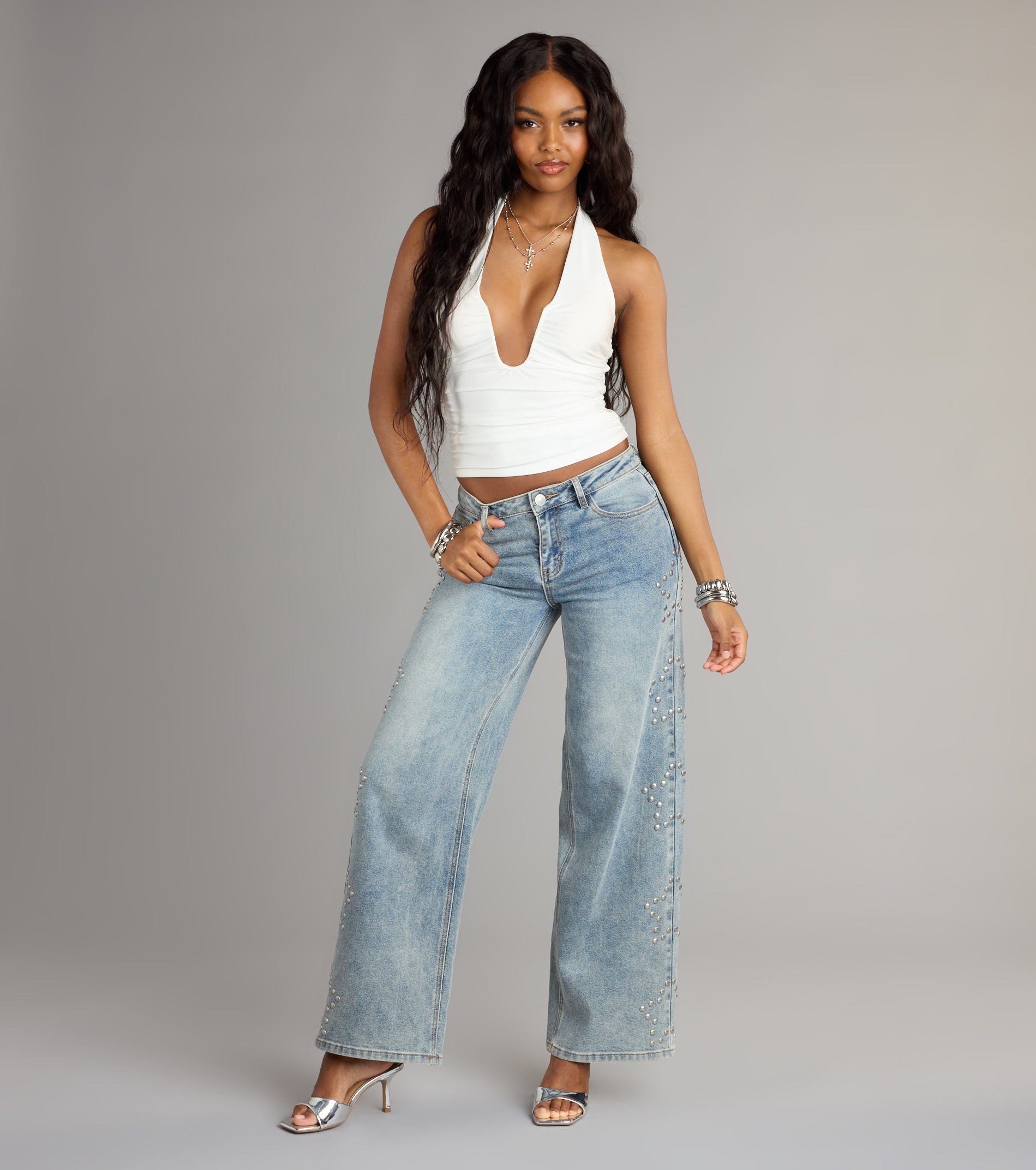 Your denim just got its diva moment—these jeans bring the sparkle without even trying. With star-studded details and a laidback wide leg. they’re ready for brunch. concerts. or strutting down the street like it’s your runway.