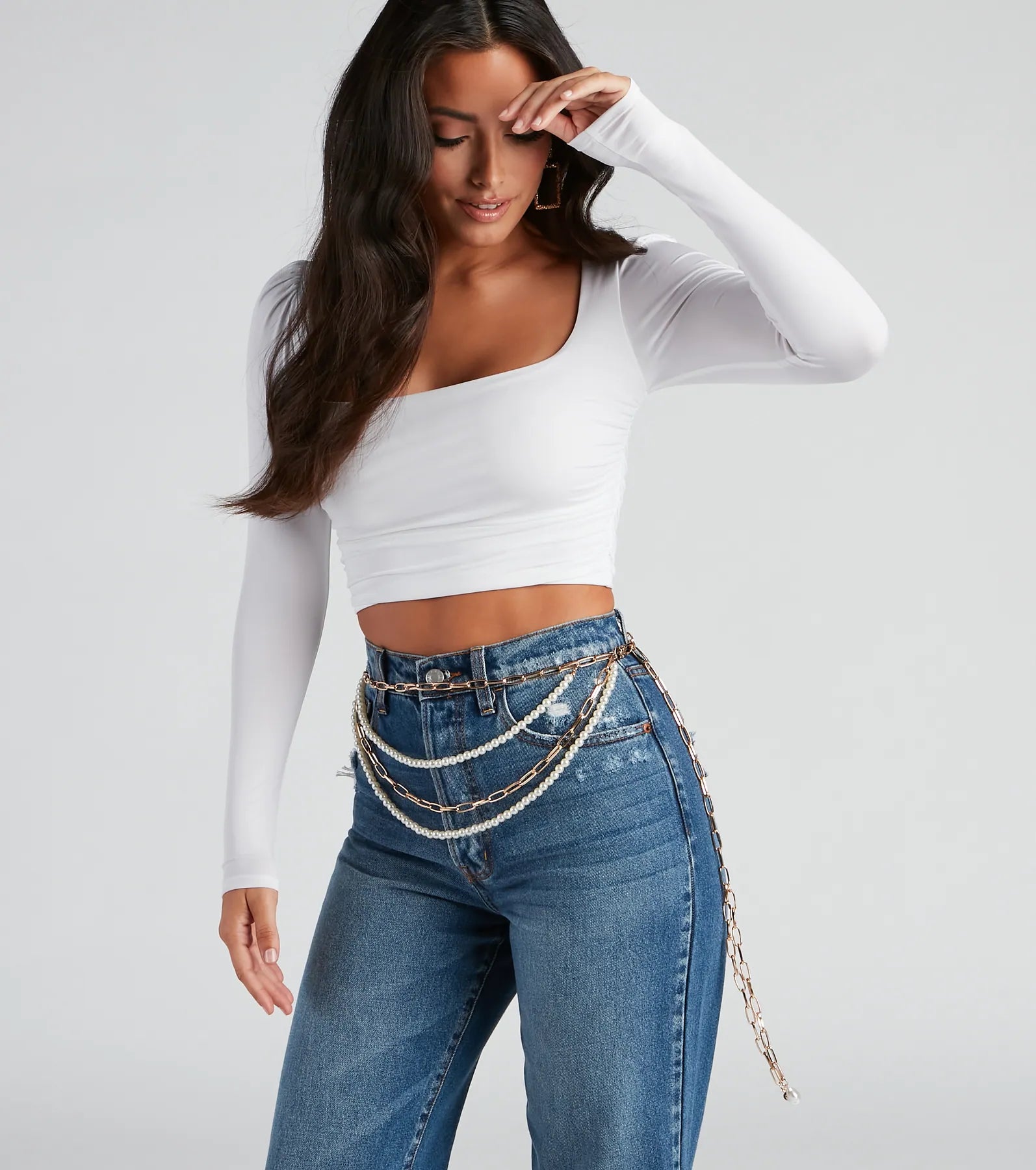 Add this perfectly unique chain belt to your outfit of the day! It features a faux pearl strand and a paper clip style chain with clip closure. Complete the look in a