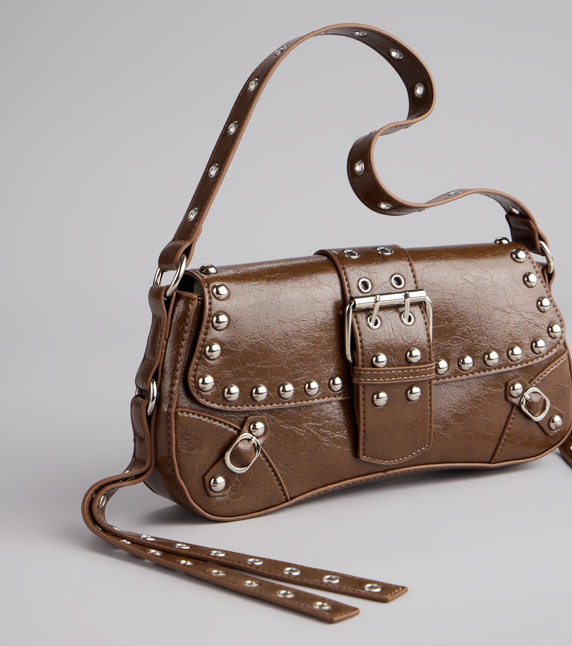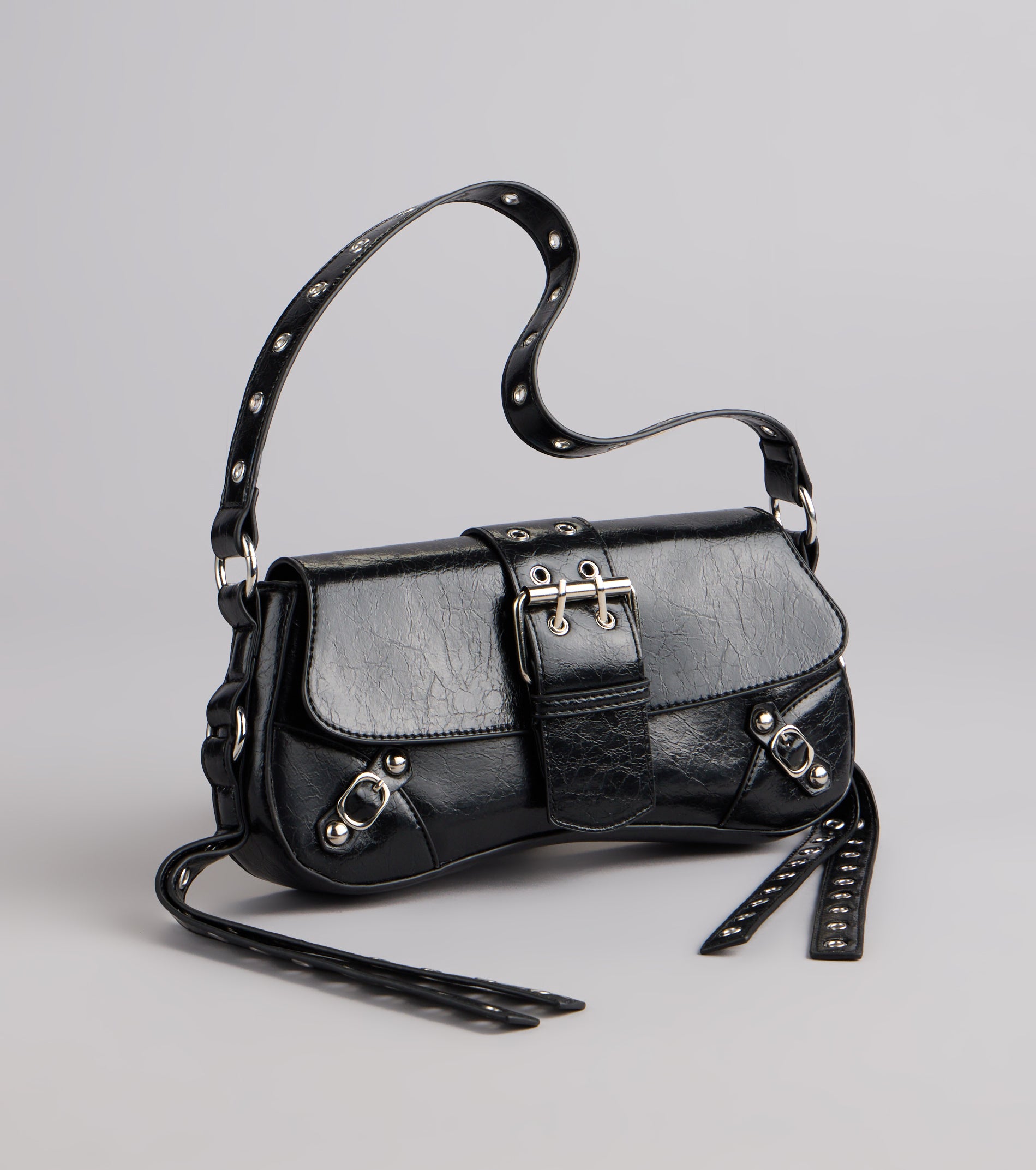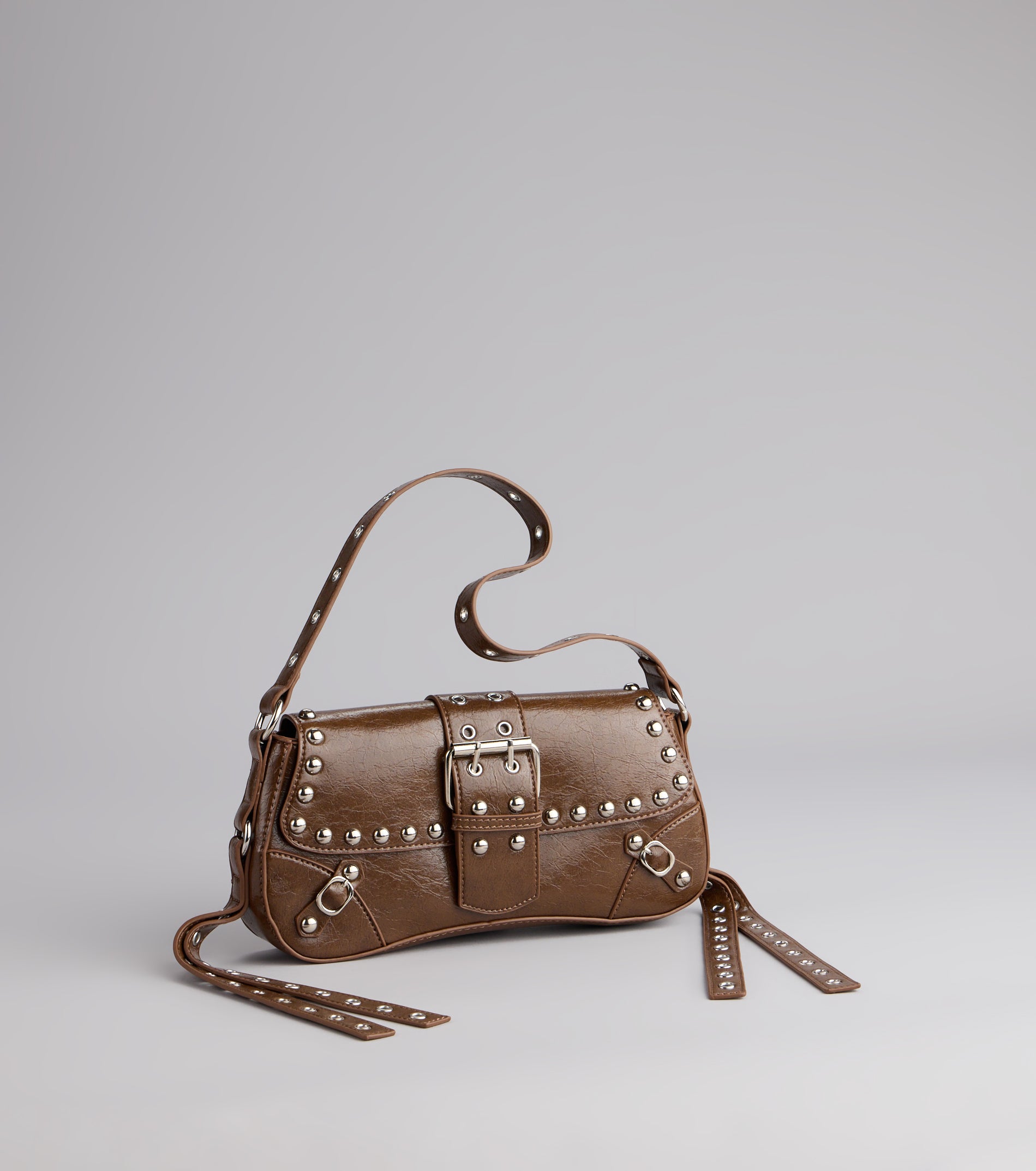 Y2K energy. but make it modern—this buckle shoulder bag is the statement piece your night-out ‘fit has been begging for. Studded details and sleek hardware keep it equal parts edgy and iconic.