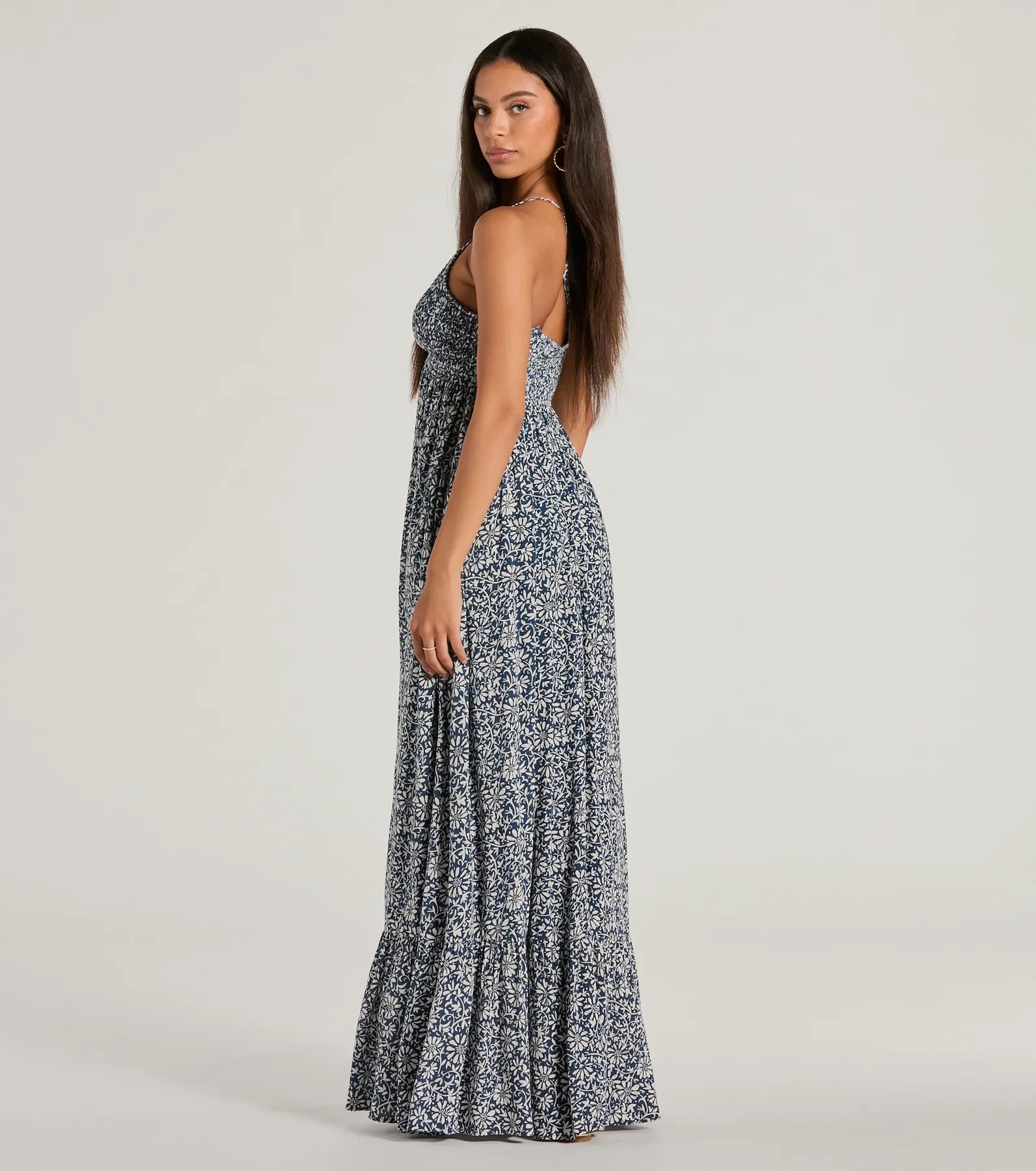Wherever your summer travels take you. always be in style with this casual floral paisley maxi dress! Featuring adjustable spaghetti straps and a stretchy smocked V-neckline. you’ll have the perfect fit for a day in the sun. The crisscross back adds a playful touch. while the ruffled hem gives a flirty flair to the flowy silhouette. Complete the look with a cute and sandals!