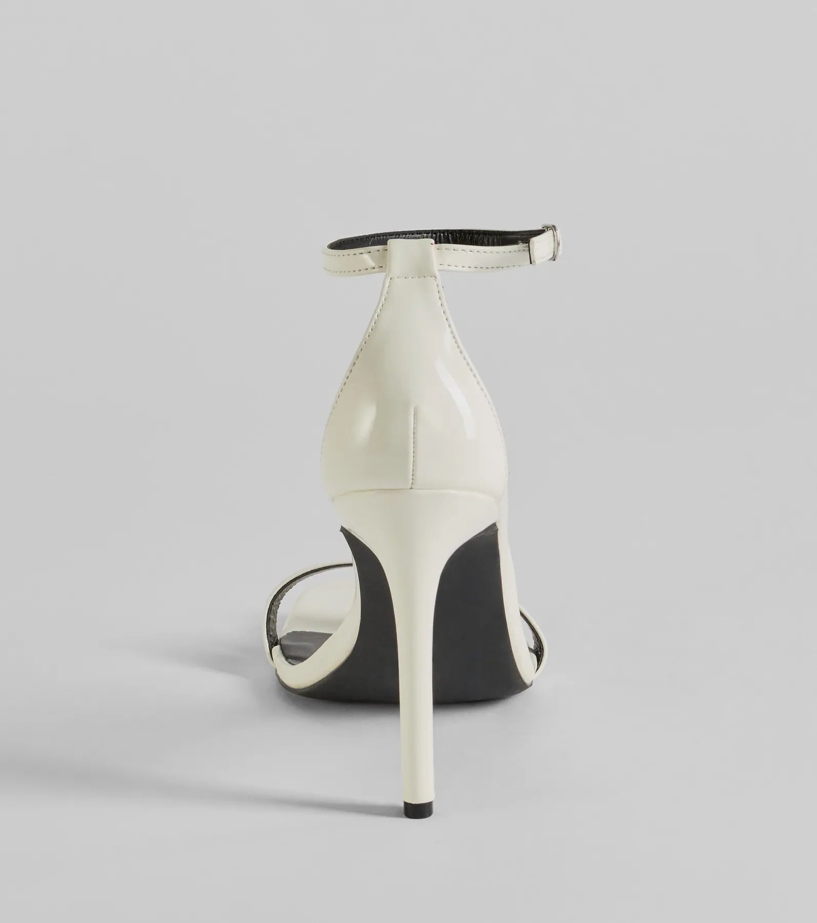 Create all sorts of stylish looks and make them pop in these patent faux leather heels featuring a sleek square toe with a strap. stiletto heel. and a closed ankle with adjustable strap and buckle closure. Complete the look with a posh .