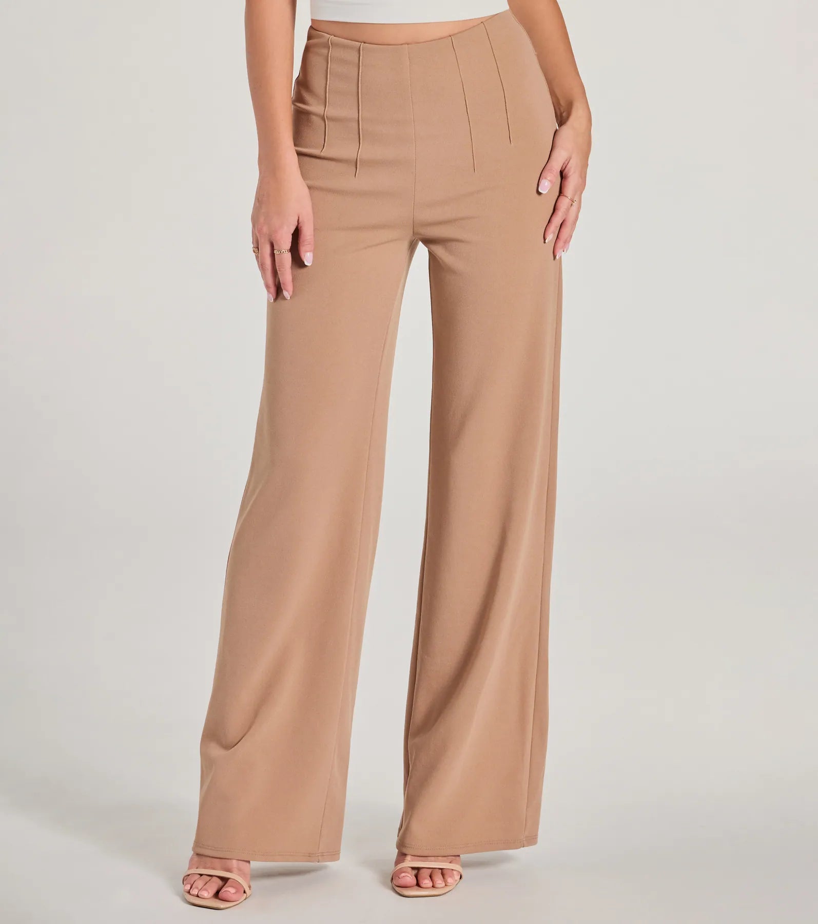 Stylish Impression High Rise Straight Leg Trouser Pants