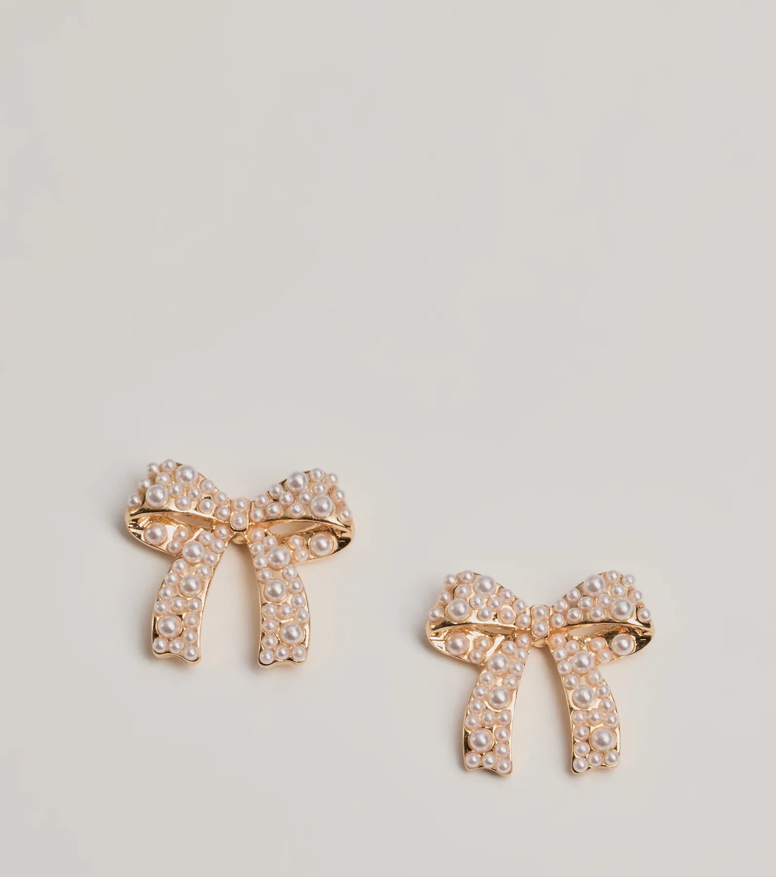 Make a sweet impression with these faux pearl bow earrings secured with a post-back closure. Complete the look in a cocktail dress and heels.