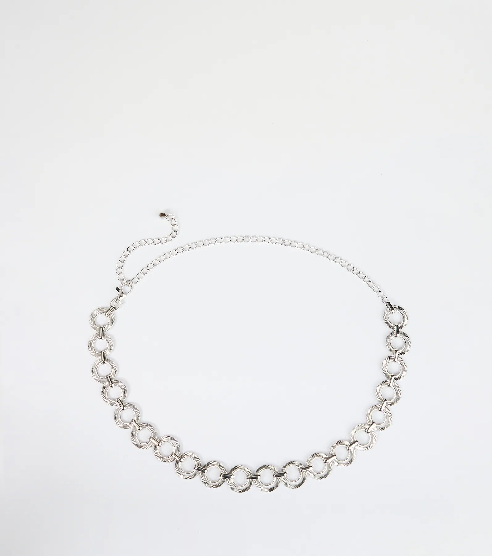 Level up the trendy vibes of your cool-girl ‘fits with this adjustable chain belt featuring a cutout O-ring design.