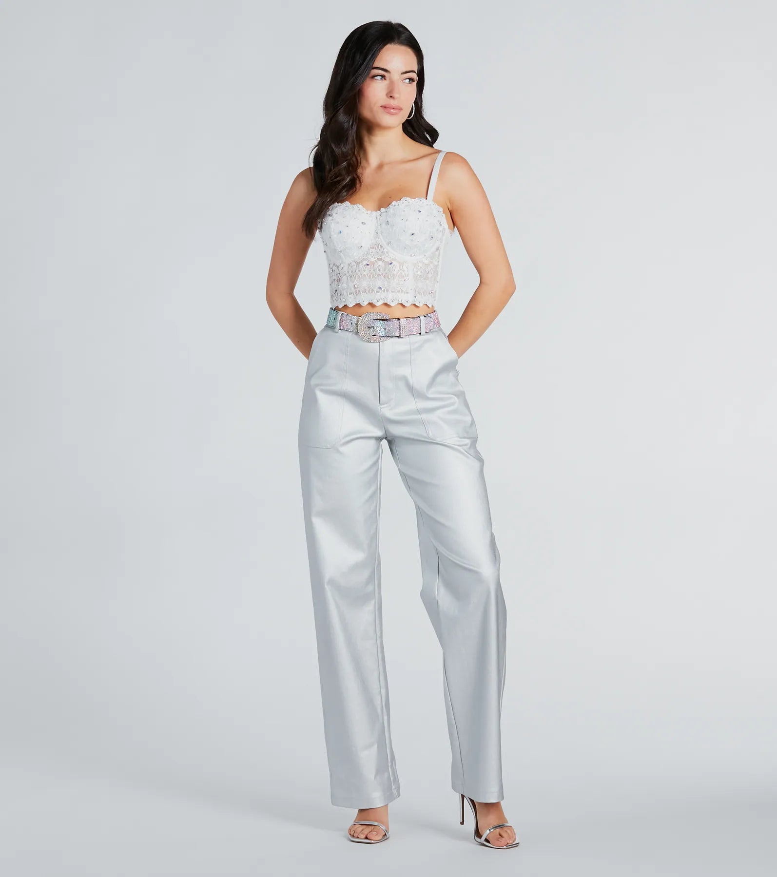 - All-over rhinestone embellishments