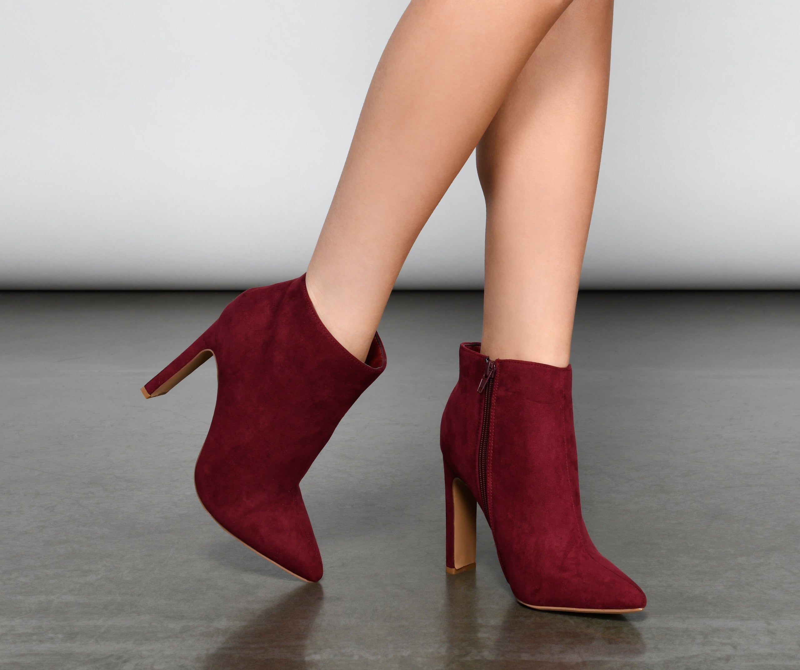 Live it up in the city wearing these faux suede pointed-toe booties! They feature a side zipper closure and a sturdy block heel. Style with a plaid and jeans.