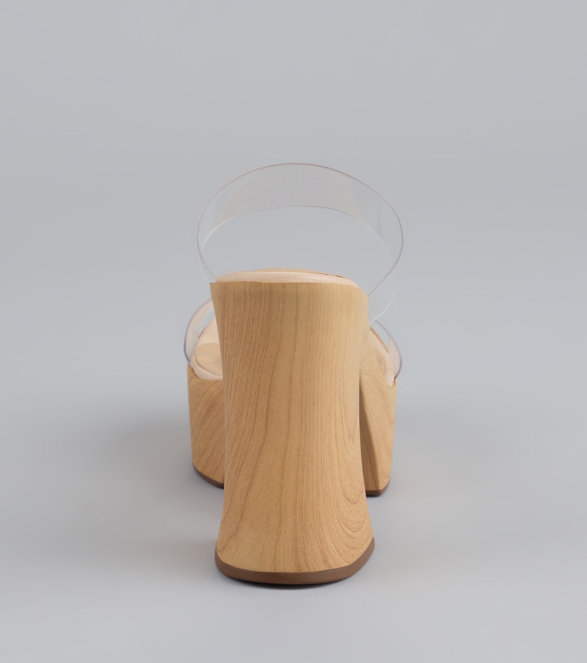 Legs for days and an attitude to match. These clear strap platform mules bring sky-high vibes with a chunky block heel that’s lightweight but never low-key.