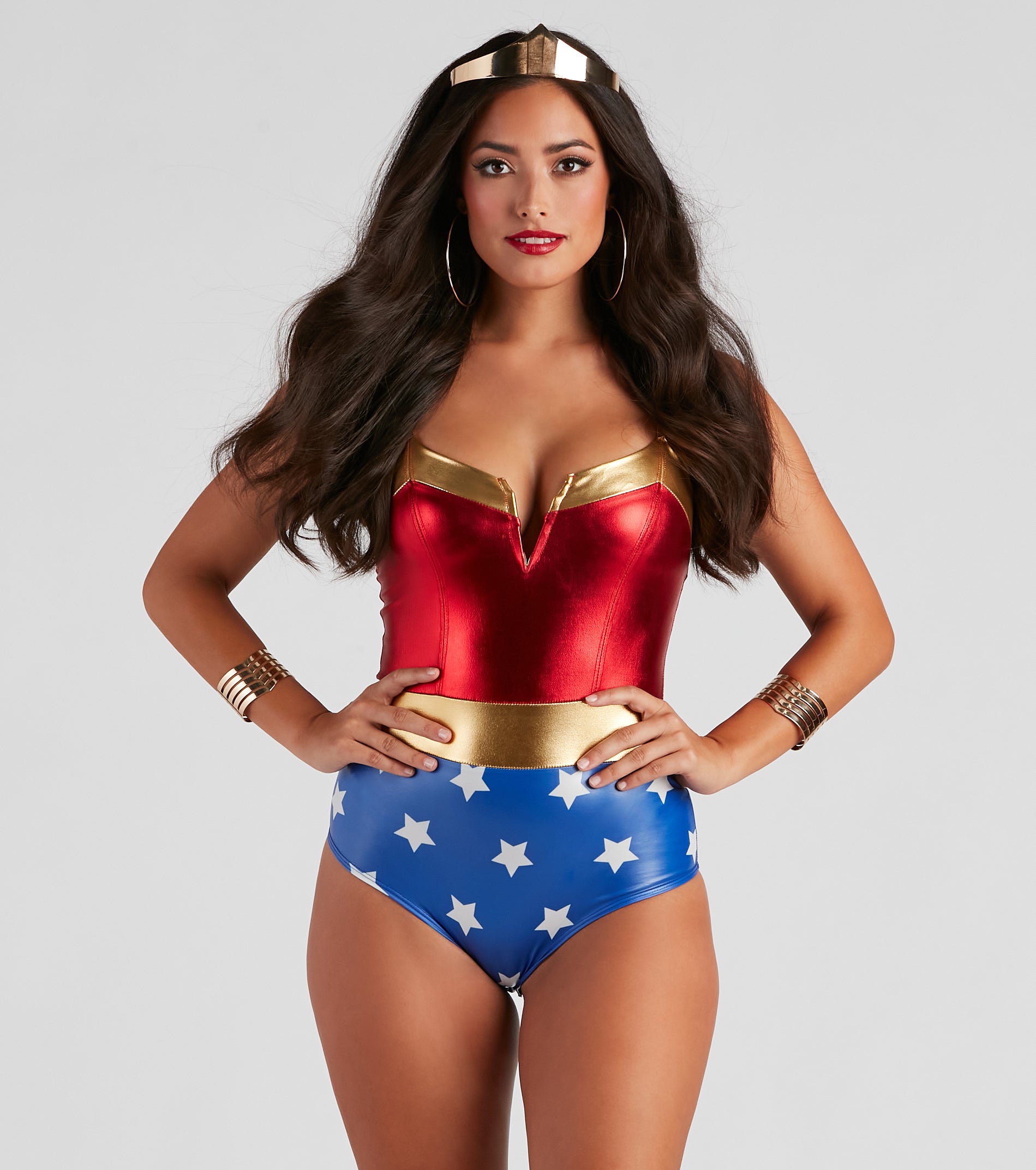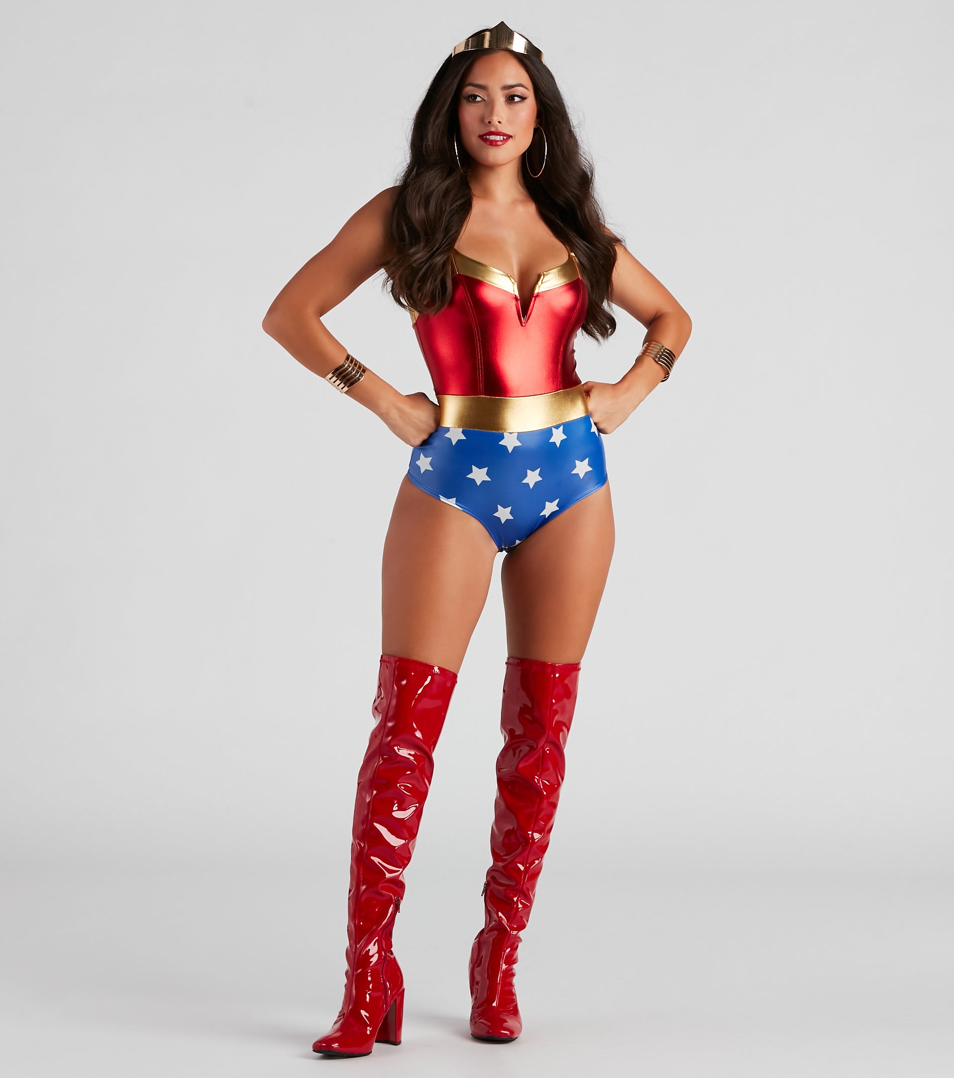 Take the flight of courage and save the city this Halloween as the Warrior Woman! A superhero lady such as yourself needs this chevron metal cuff bracelet for the perfect costume accessory. Don’t forget to add to the cart the boots. and bodysuit!