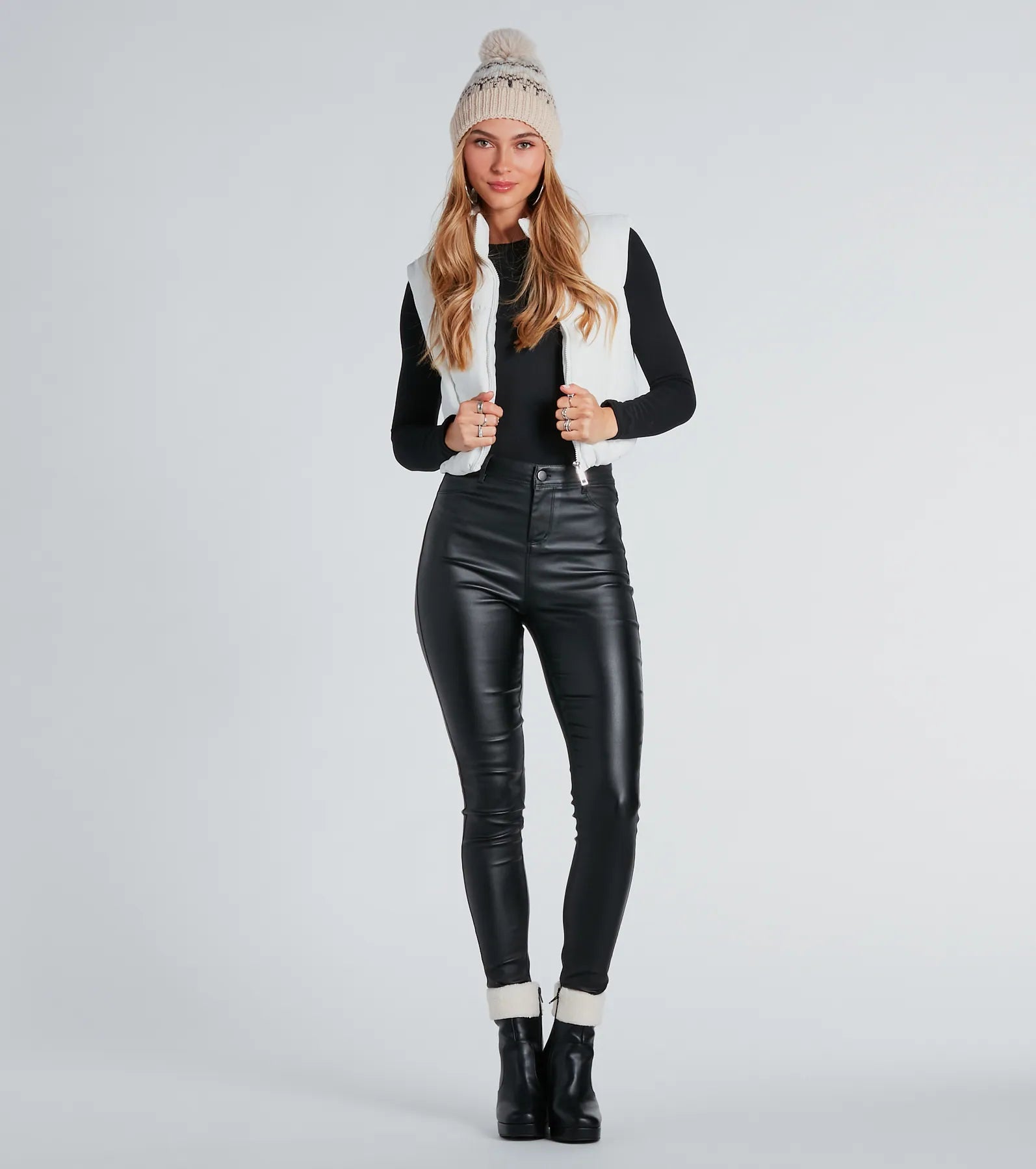 You’ll look like a total cutie in this knit beanie! Featuring a furry pom top. and a fair isle pattern. and is composed of cozy knit material. Complete the look in a for cold days!