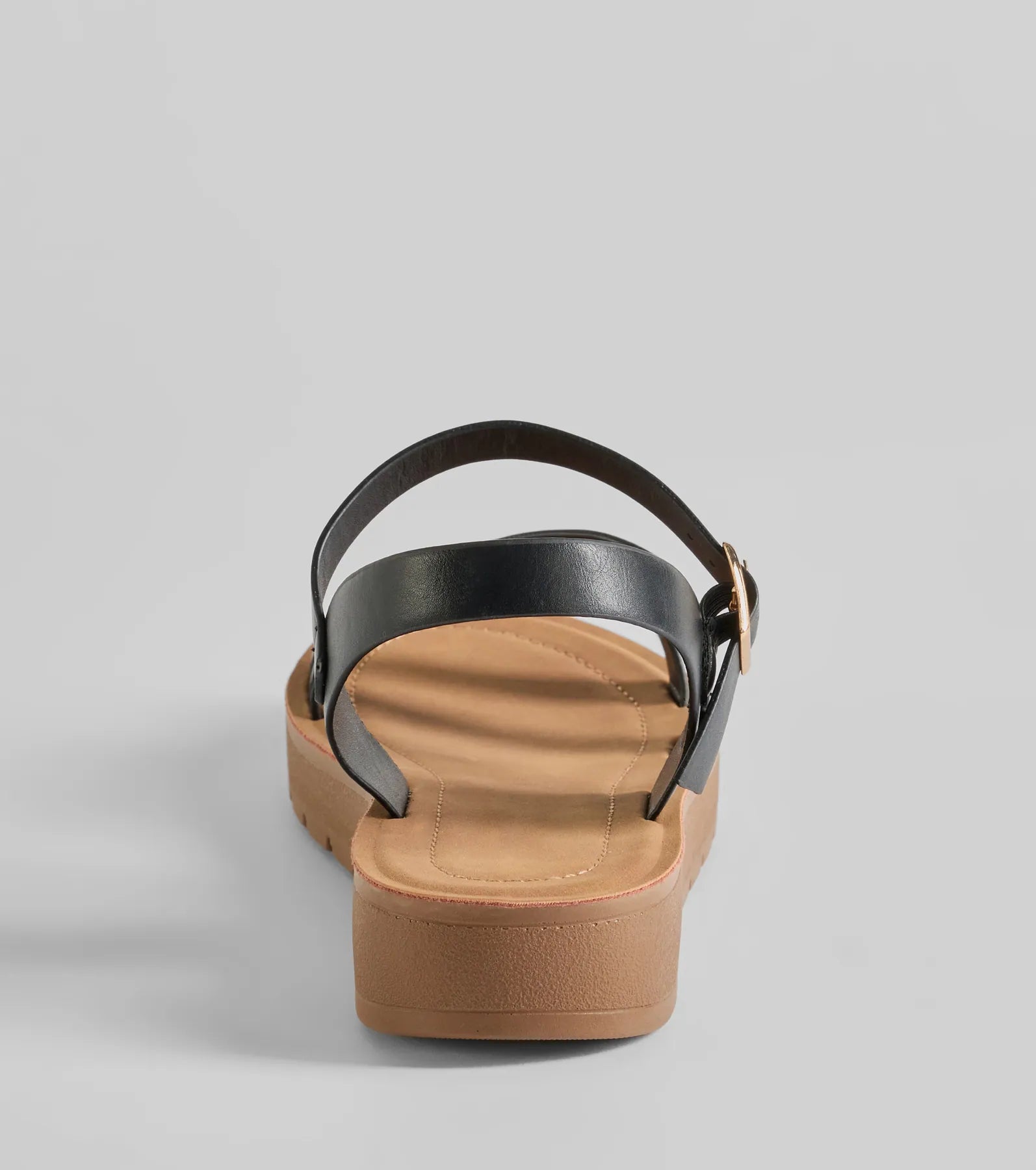 Take a stylish walk around the block in these platform sandals featuring a round toe. asymmetrical faux leather strap. and an adjustable ankle strap with buckle closure. Complete the look in a breezy for vacation or weekend plans!